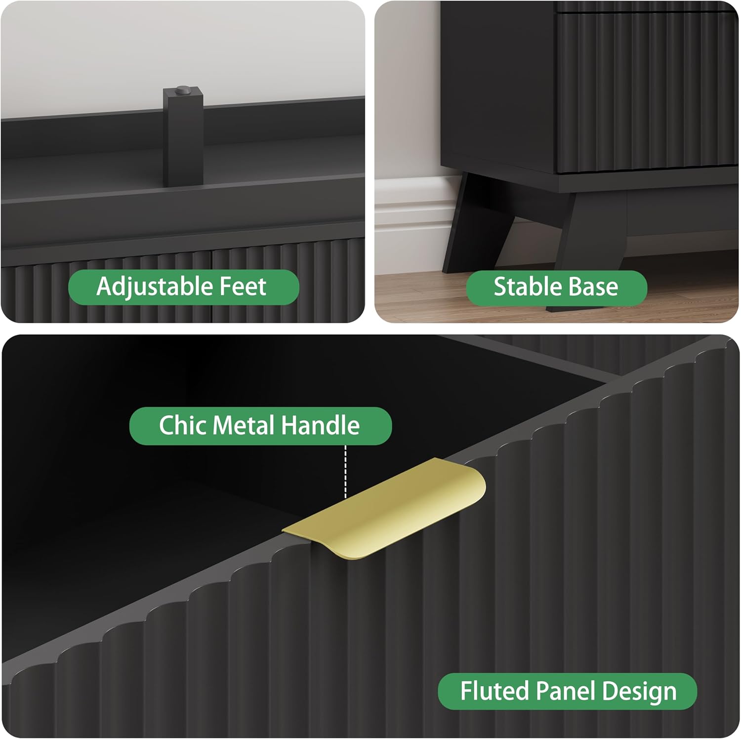 Fluted Dresser for Bedroom with 7 Drawers, 48" Wide Chest of Drawers with Metal Handle, Modern Wood Dresser TV Stand, Wooden Closet Clothes Storage Organizer for Living Room, Hallway, Black