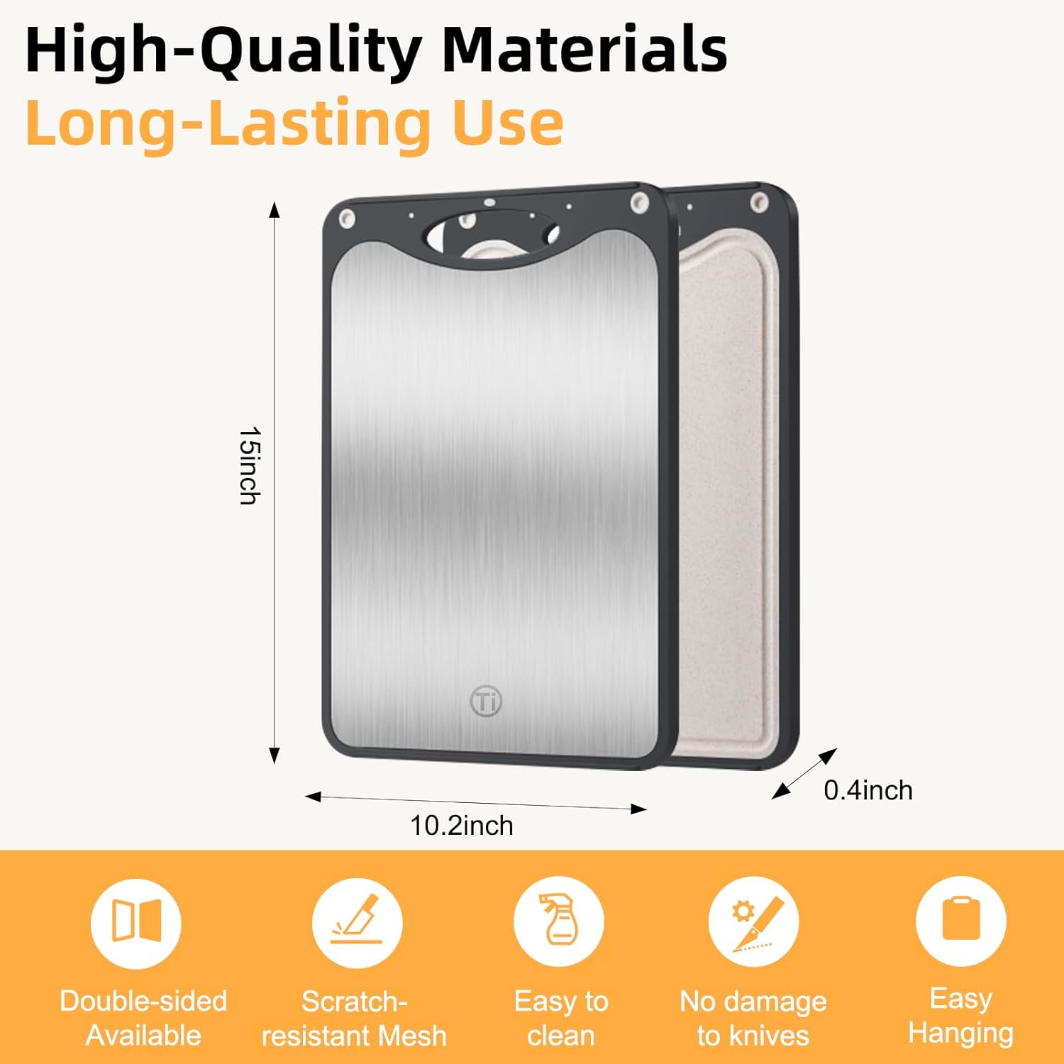 - 🛡️【Sturdy and Durable】Both sides of the food-safe cutting board are hole-free and built to last. Its sturdy structure ensures long-term use, making it a reliable option for restaurants and households. The titanium cutting board for kitchen is designed to resist stains and odors, maintaining a clean and safe environment