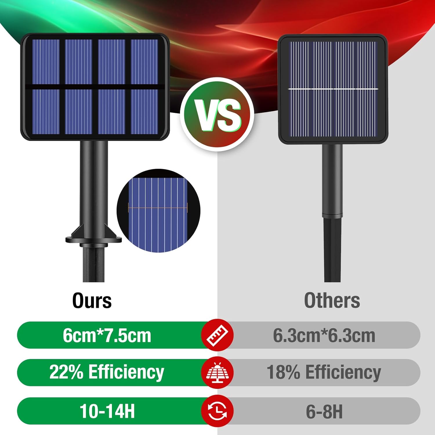 - High Efficiency and Auto ON/OFF: Larger size of the new solar panel translates to a greater surface area for capturing sunlight. Solar power tree wrap lights charge during the day and light up automatically at night. After charging in direct sunlight for 6-8 hours and can lasting for 10-14 hours. Make sure you press the on/off button before charging