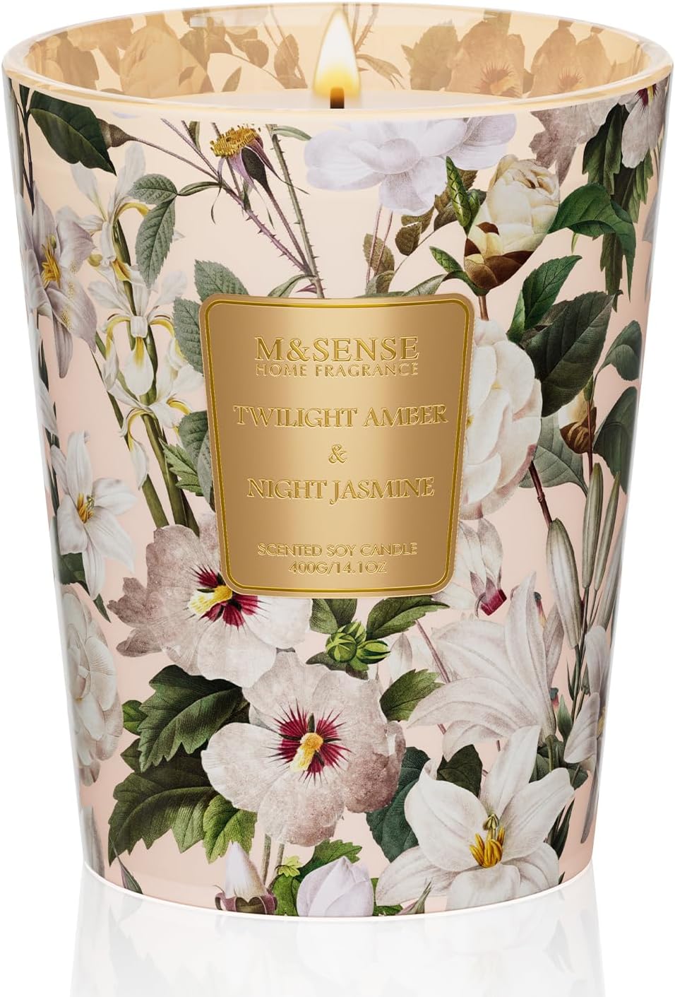 M&SENSE Amber Jasmine Scented Candle, Soy Candles 14.1oz 60H Slow Burning, Aromatherapy Stress Relief Home Fragrance Housewarming Gifts