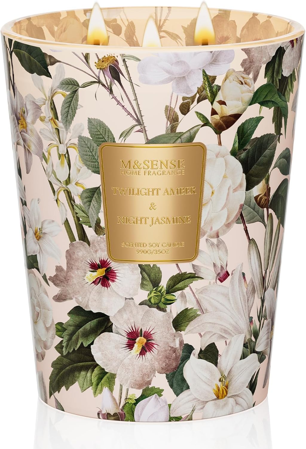 M&SENSE Amber Jasmine Scented Candle 35oz 150H Long Lasting, 3 Wick Soy Candles Aromatherapy Stress Relief Home Fragrance Housewarming Gifts
