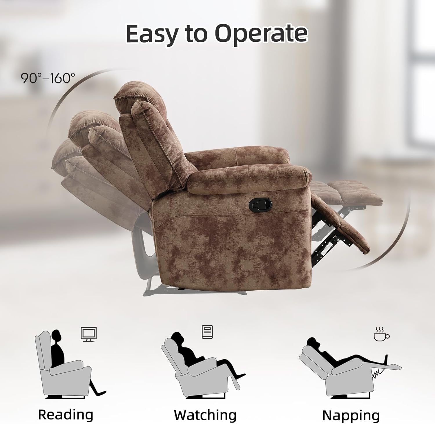 - Soft and Durable Fabric Upholsterr: Wrapped in soft, breathable fabric that adds warmth and coziness to your space. This durable material resists wear, making manual recliner chair ideal for everyday use in living rooms or bedrooms