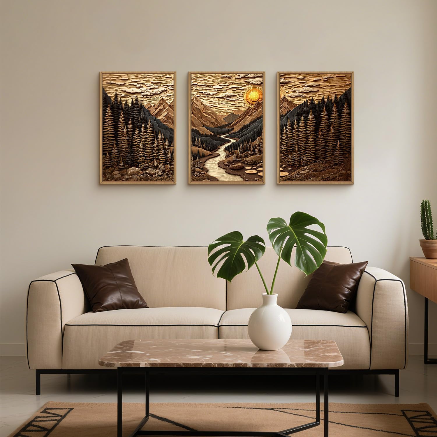 - 【Abstract Landscape Wall Art】The size of the rustic mountain landscape framed canvas wall art set is: 16x24inchx3pcs (40x60cmx3pcs). Vintage print artwork use high-quality environmentally friendly ink and high-quality canvas, and use the industry's top printers for layered spraying, the colors are delicate and the transition is natural. bring you visual enjoyment.
