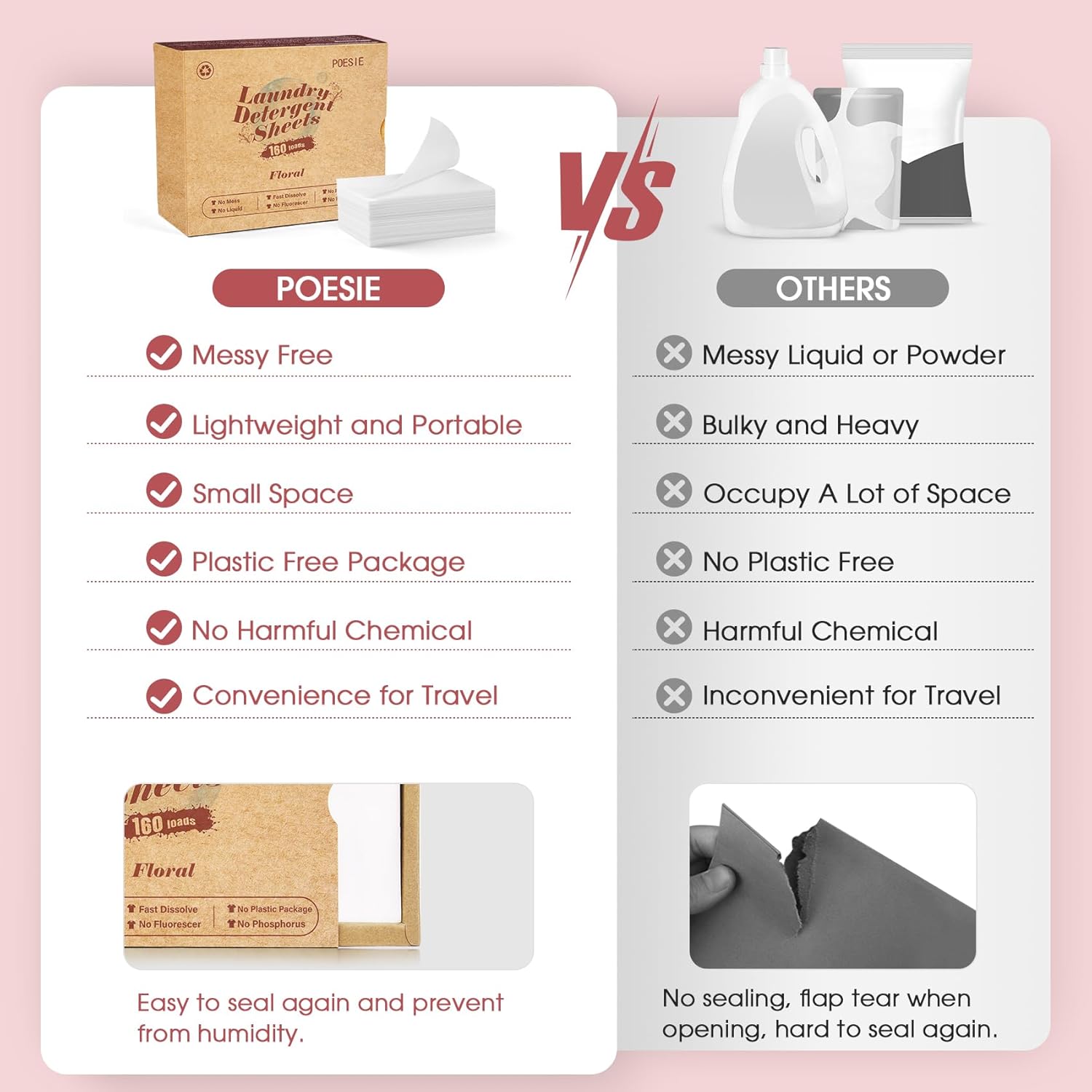 Poesie Laundry Detergent Sheets Floral Scent 160 Count College Dorm Essentials for Girls No Messy Liquid Powder Detergent Strips for Clothes Washing