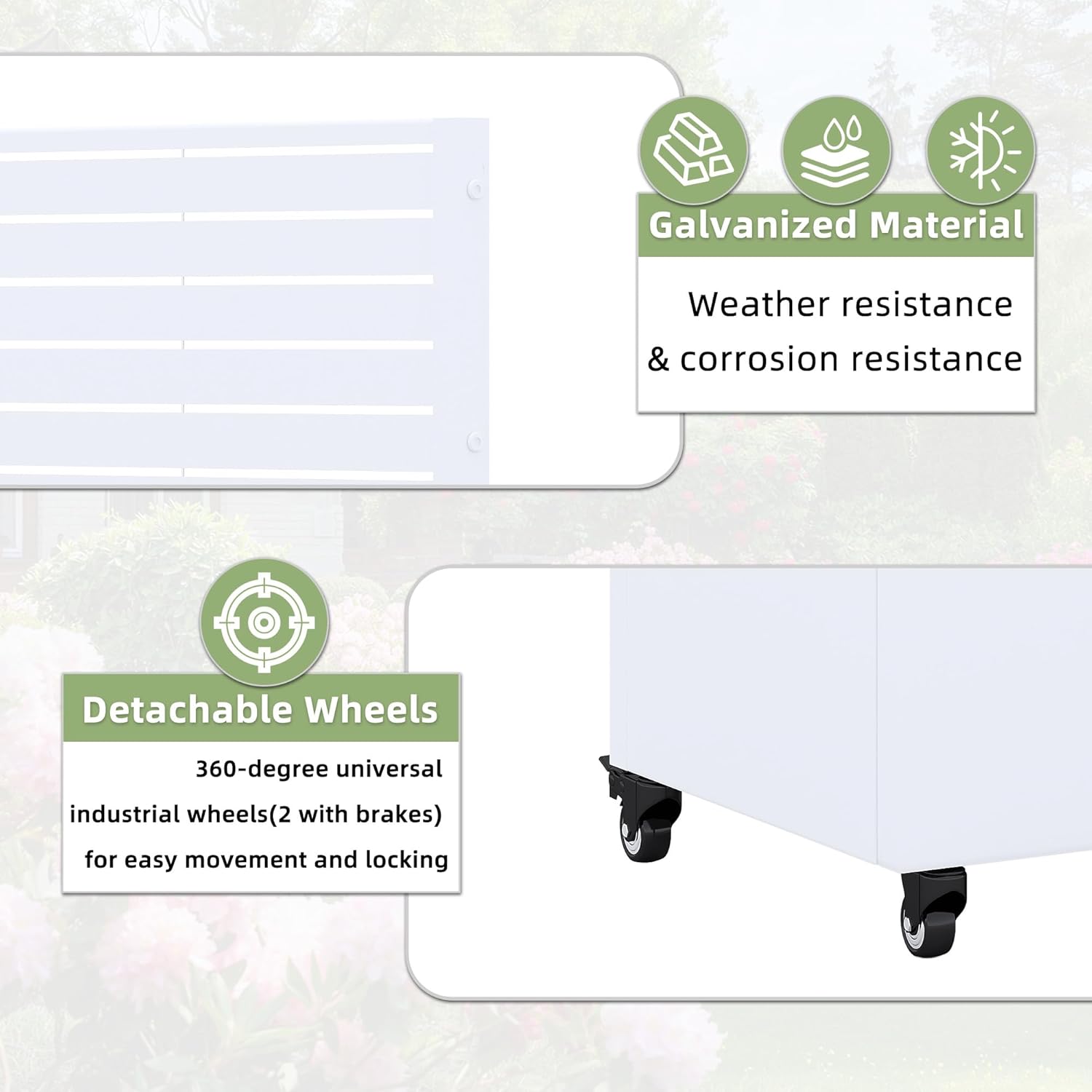 Casaphoria Metal Raised Garden Bed with Trellis and Wheels, 47"x47"x16" Planter Box for Climbing Plants, Vegetables & Vines, Features Drainage Holes and Privacy Screen (White-Louvered)