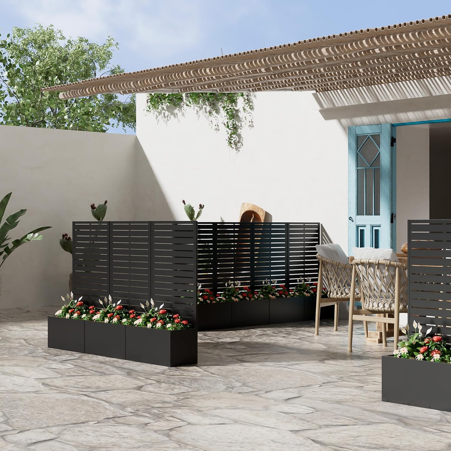 Casaphoria Metal Raised Garden Bed, 47"x24"x12" Planter Box for Climbing Plants, Vegetables & Vines, Features Drainage Holes and Privacy Screen (Black-Louvered)