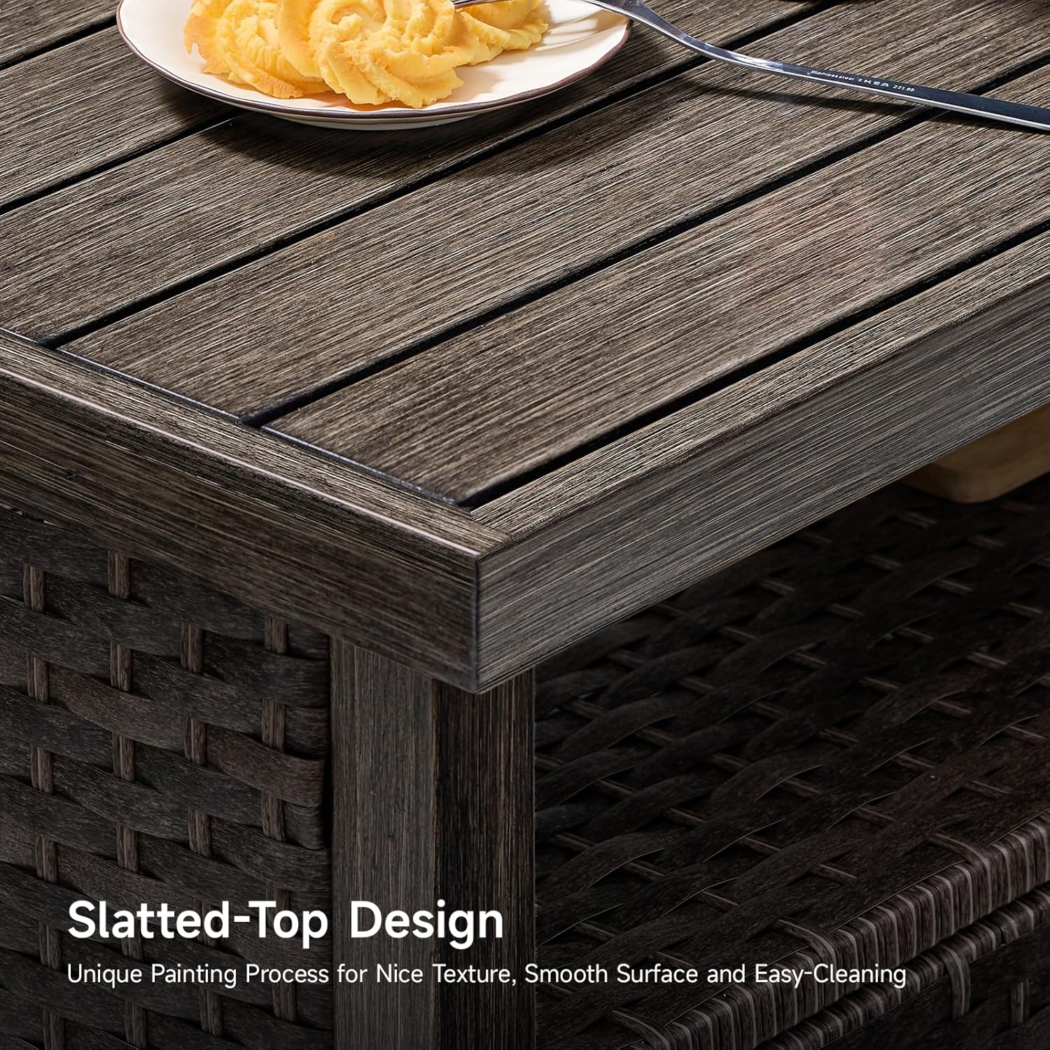 - Weatherproof Materials: Rain or shine, this patio cabinet stays elegant! Handwoven PE rattan brings nice texture that resists cracking, paired with a painted steel frame that resist rust and sunburn. Whether on a sunny patio or in a humid environment, rotting and fading are no more. Tough enough for outdoors, chic enough for indoors!