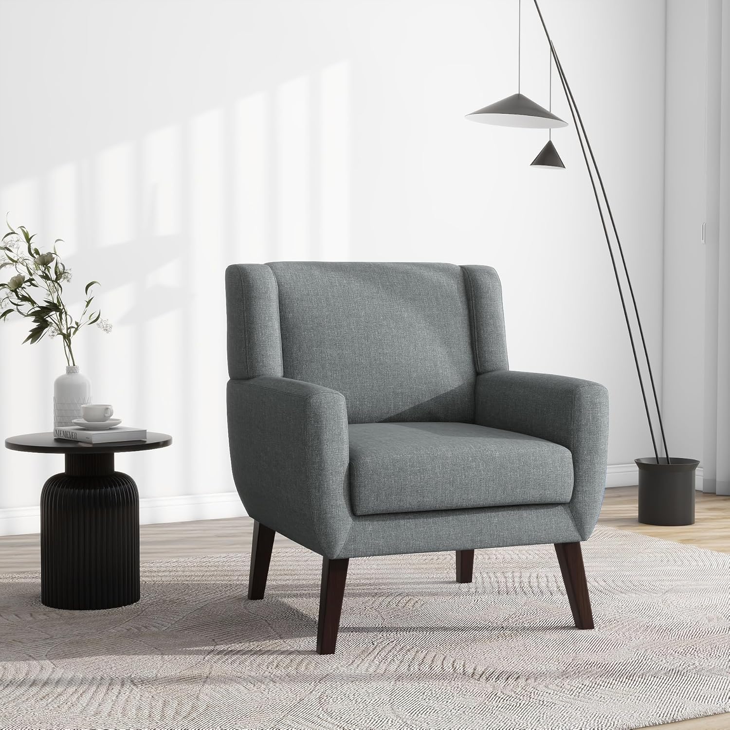 UIXE Accent Chairs Set of 2, Fabric Upholstered Armchair for Living Room, Comfy Arm Chair Single Sofa Bedroom Side Reading Seat - Flax Gray