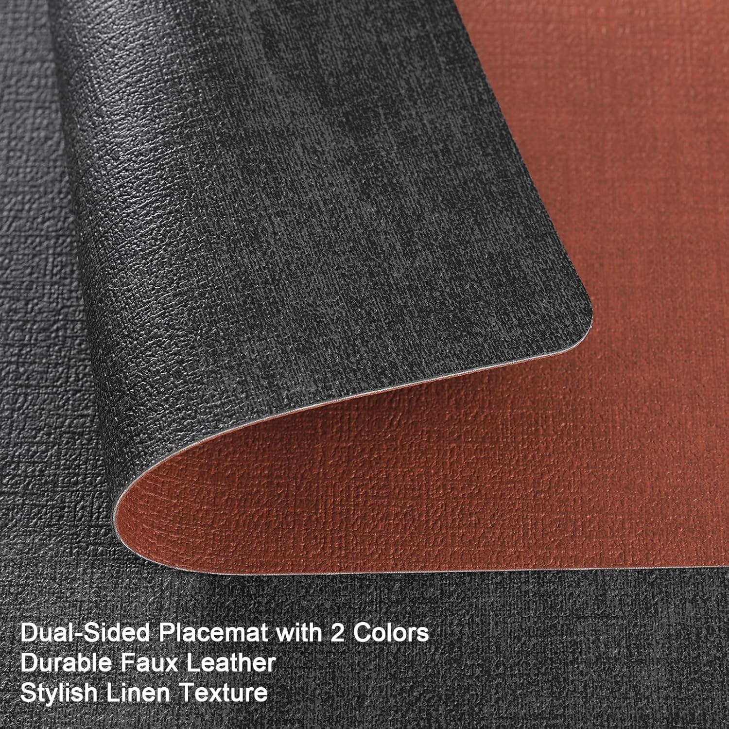 Myir JUN Placemats Dual Sided, Faux Leather Place Mats Set of 6 Indoor for Dining Table Non-Slip Washable Wipeable Heat Resistant Outdoor Table Mats (Gray Terracotta, Set of 6)