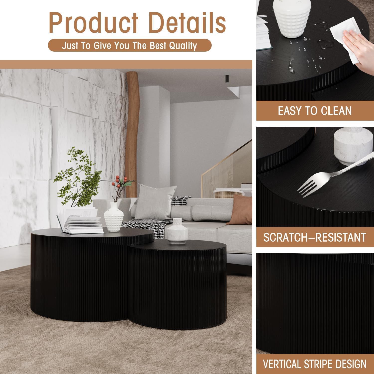 - STURDY AND STYLISH SUPPORT: The modern tables feature robust yet simple supports that add both stability and a touch of elegance. This ensures they are not only functional but also enhance the overall appearance of your living area, blending seamlessly with your existing furniture.