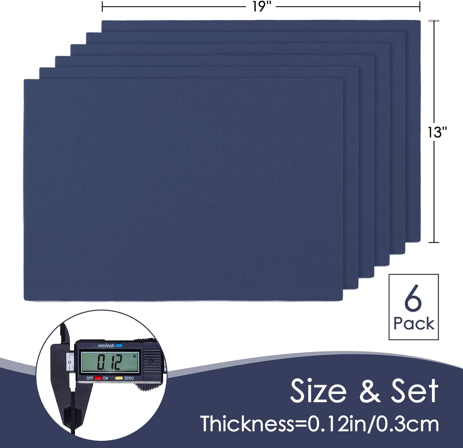 MANSPHIL Navy Blue Cloth Placemats Set of 6, Double Layer Faux Linen Place Mats Heat Resistant Washable Table Mats for Dining Kitchen, 13x19 Inch
