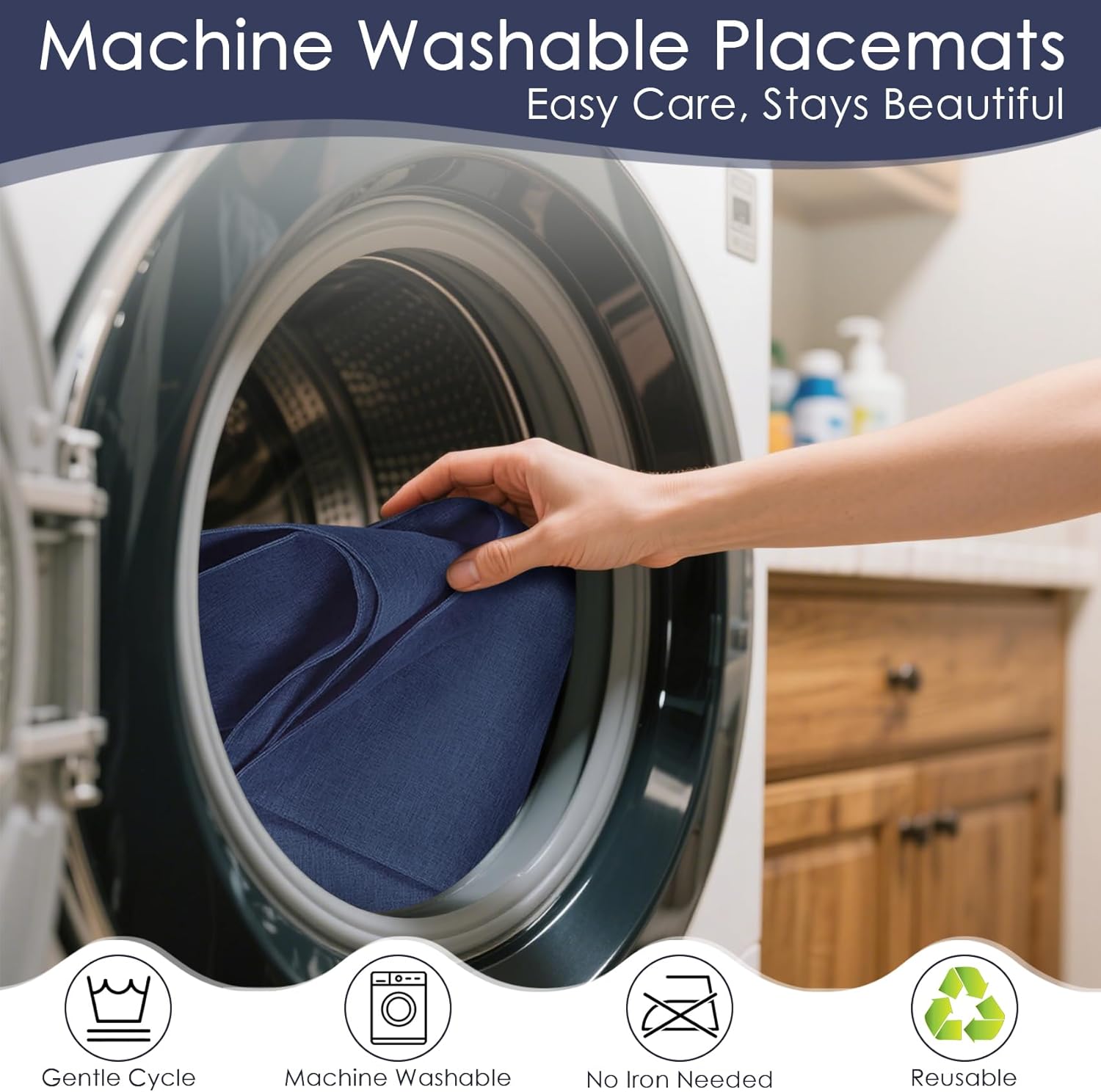 - High Quality & Durable: Our table mats are made from a durable cotton-polyester blend, dual-layered, thickness and durability. Reversible design place mats feature a stylish linen-like design for lasting elegance