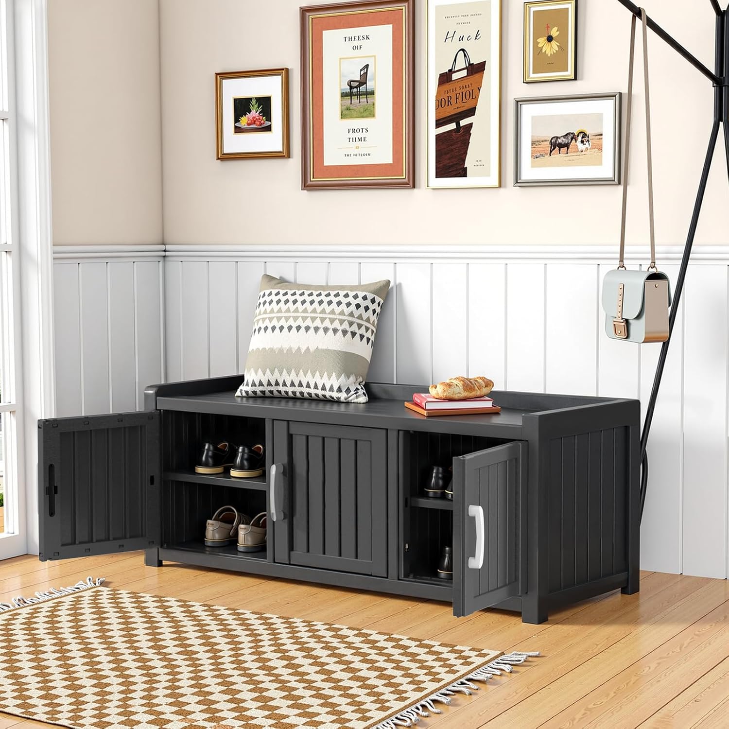 ROJIK Shoe Cabinet Waterproof UV-Resistant,Storage Bench Indoor Outdoor with Adjustable Shelves,for Entryway Bedroom,Hallway,Living Room(3 Door,Black)
