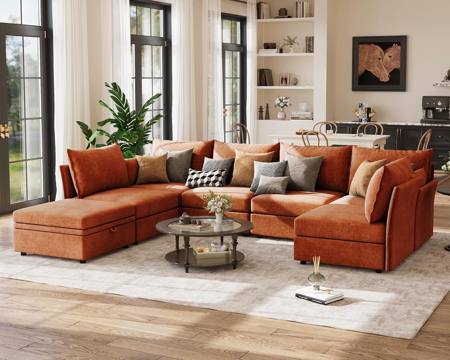 134.6" Oversized Modular Sectional Sofa, Large 7 Seater U Shaped Couch with Storage Ottoman with Reversible Chaise Deep Seat for Living Room, Apartment - Chenille Terracotta