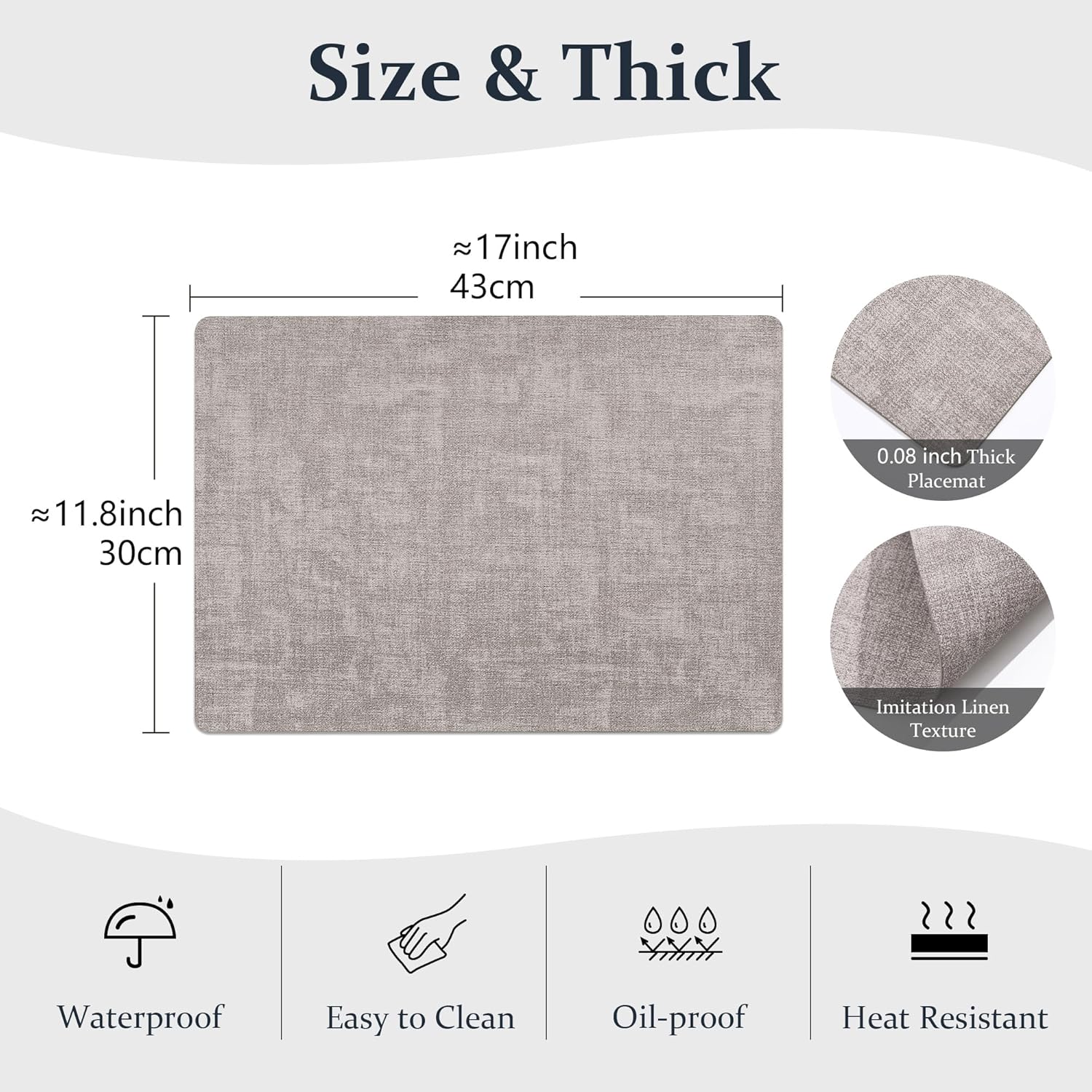 FROMHEART Faux Leather Placemats Set of 4–Waterproof,Heat/Oil Stain-Resistant PU Table Mat–Reversible,Non-Slip,Easy to Clean Place Mats for Kitchen,Dining,Indoor/Outdoor,(Light Grey,11.8" x 17")