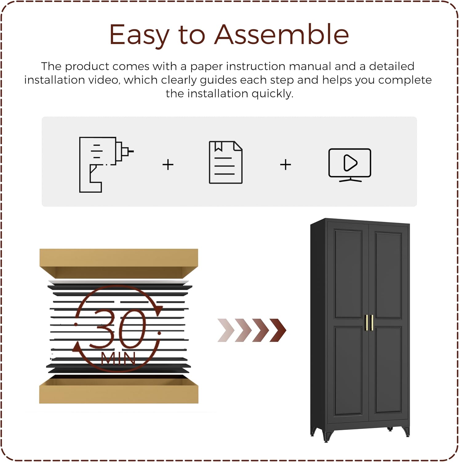 - 【Easy Assembly】The assembly of the tall cabinet is very simple, with clear part labels and step-by-step instructions. If you encounter any issues during setup, please feel free to contact us
