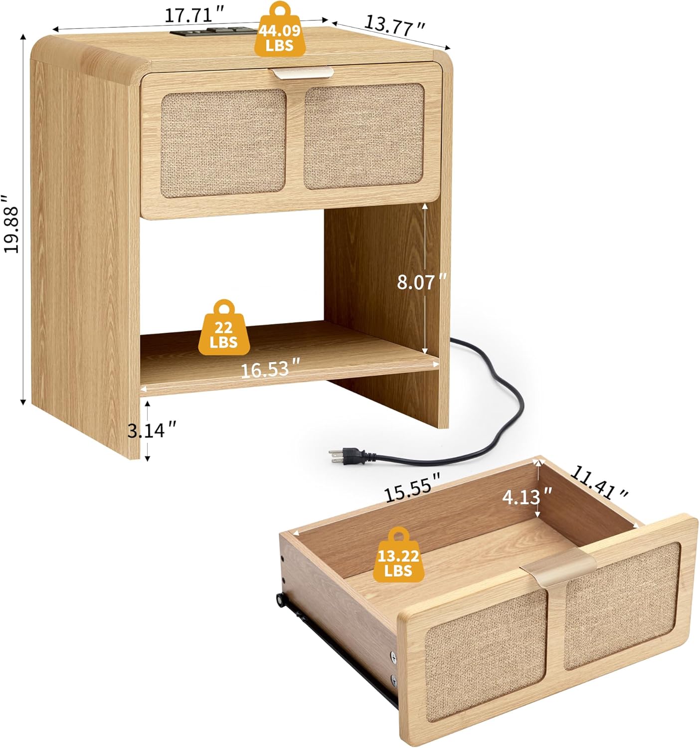 - 【Convenient Charging Station】Equipped with USB ports and power outlets, this bedside table makes device charging simple and organized—ideal for modern bedrooms and shared spaces like dorms.