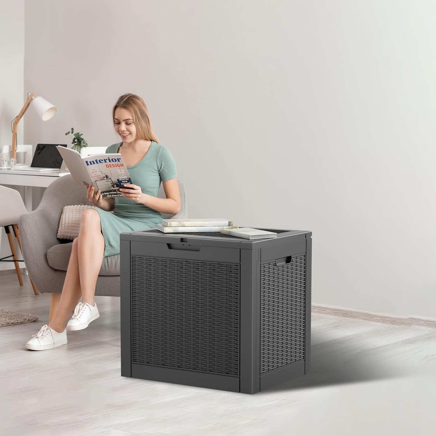 - Dual Indoor-Outdoor Functionality: This resin deck box transitions seamlessly between patio and indoor spaces, storing cushions, tools, or accessories while doubling as side tables or seating.