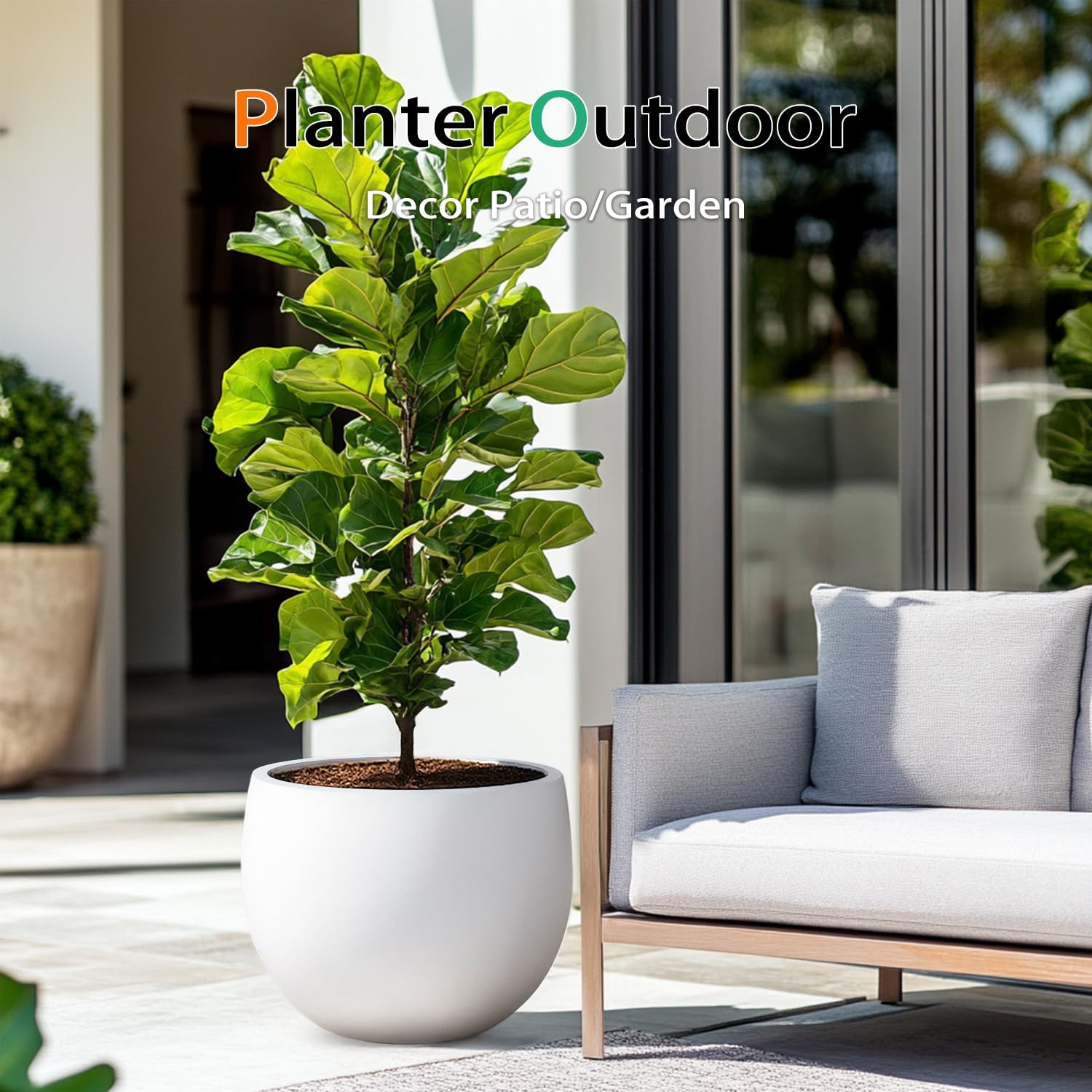Ball Concrete Planter Outdoor Indoor, Large Tall Cement Plant Pots for Trees Flowers (White, 20 inch)