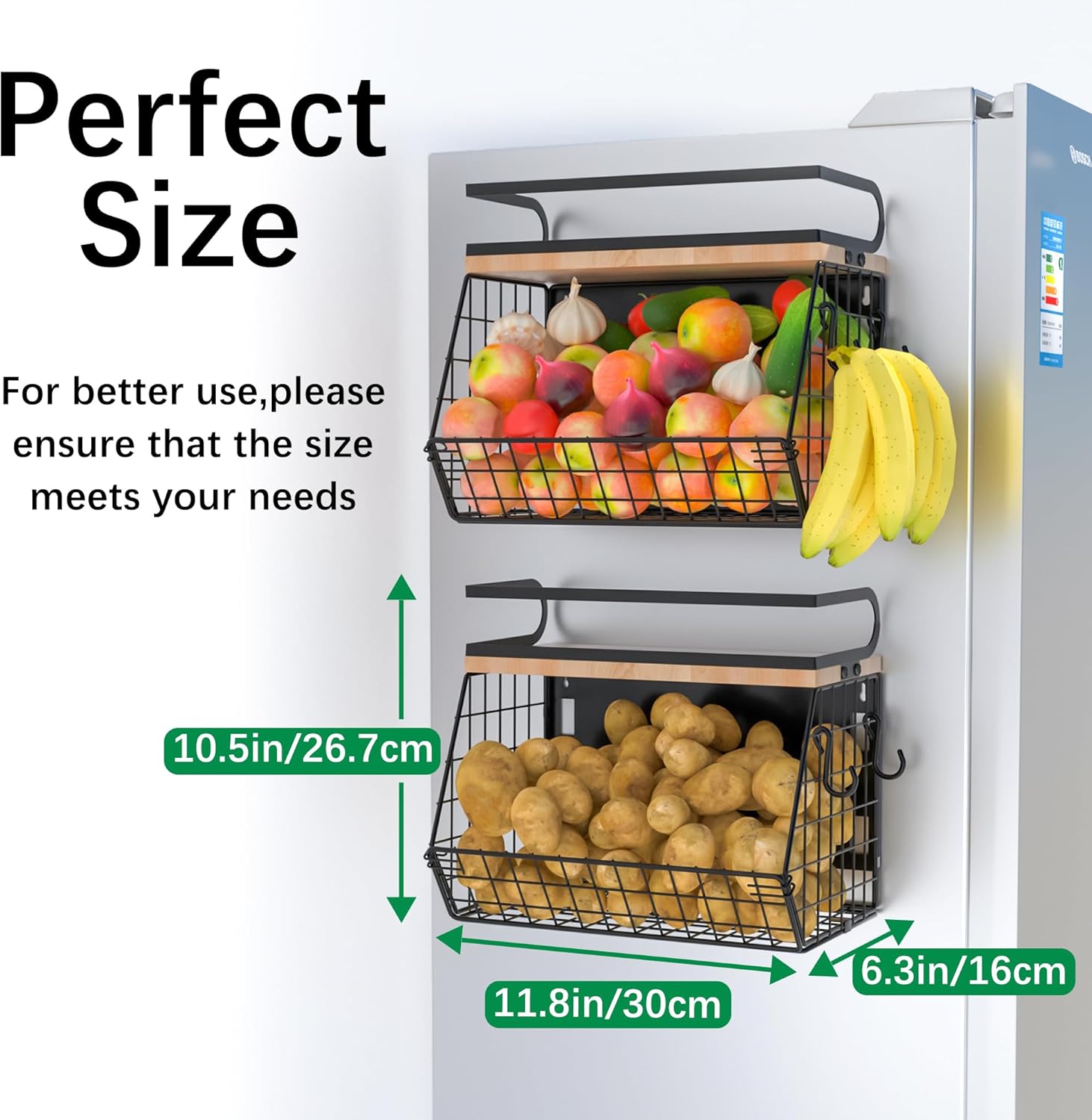 - Magnetic Attraction Feature:Our magnetic shelf has Powerful magnets let this fridge organizer attach securely to any metal surface,like fridge,washer,or metal racks,without drilling or slipping.Ideal for potatoes and onion storage.