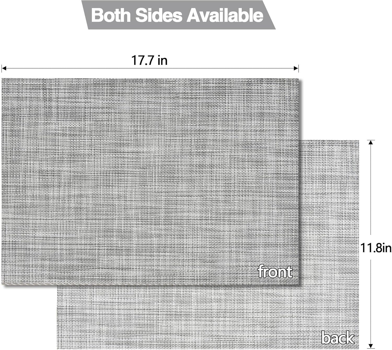 - Environmentally Material: 70% PVC and 30% Polyester. PVC materials are used for the placemats, very durable, flame-retardant, no fading and heat resistant, very safe to use, all placemats are cut by machine with no rough selvedge, free bending, free cutting. Placemats for dining table set of 4, they are the best decoration and protection for your dining table