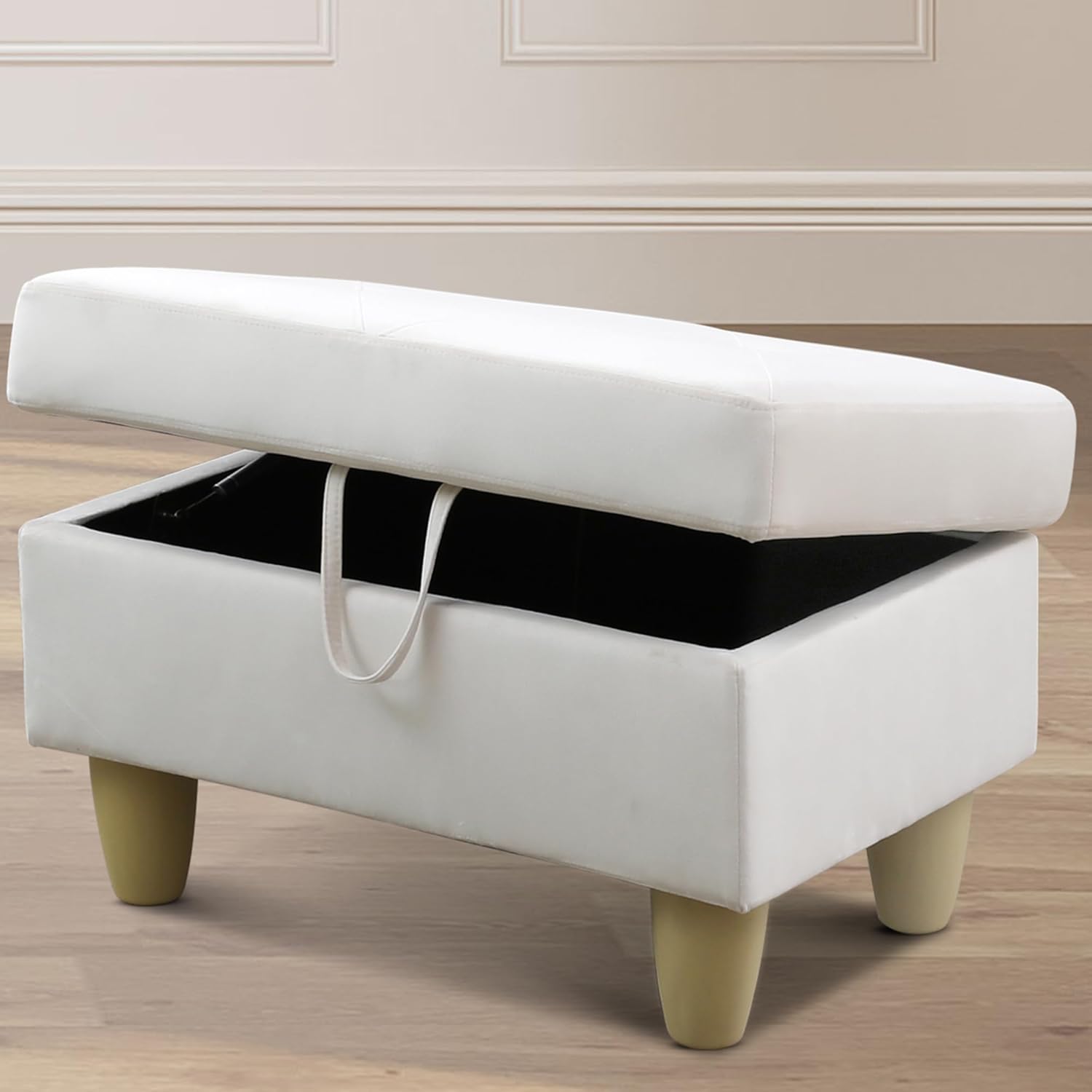 - HIGH-QUALITY MATERIALS: Built with a sturdy solid wood frame, this ottoman offers exceptional durability. Its soft flannel surface provides comfort and a smooth texture, making it ideal for seating. The cushioned lid adds an extra touch of comfort, enhancing the overall seating experience.