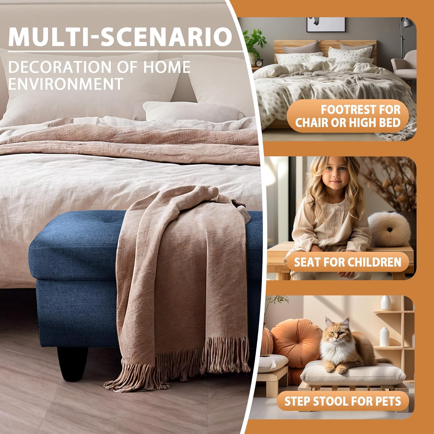 - VERSATILE DESIGN: This ottoman effortlessly adapts to multiple settings, making it a perfect fit for your bedroom, living room, entryway, or hallway. It can be used as an entryway bench, footrest, accent piece, or extra seating, adding both function and style to your home.