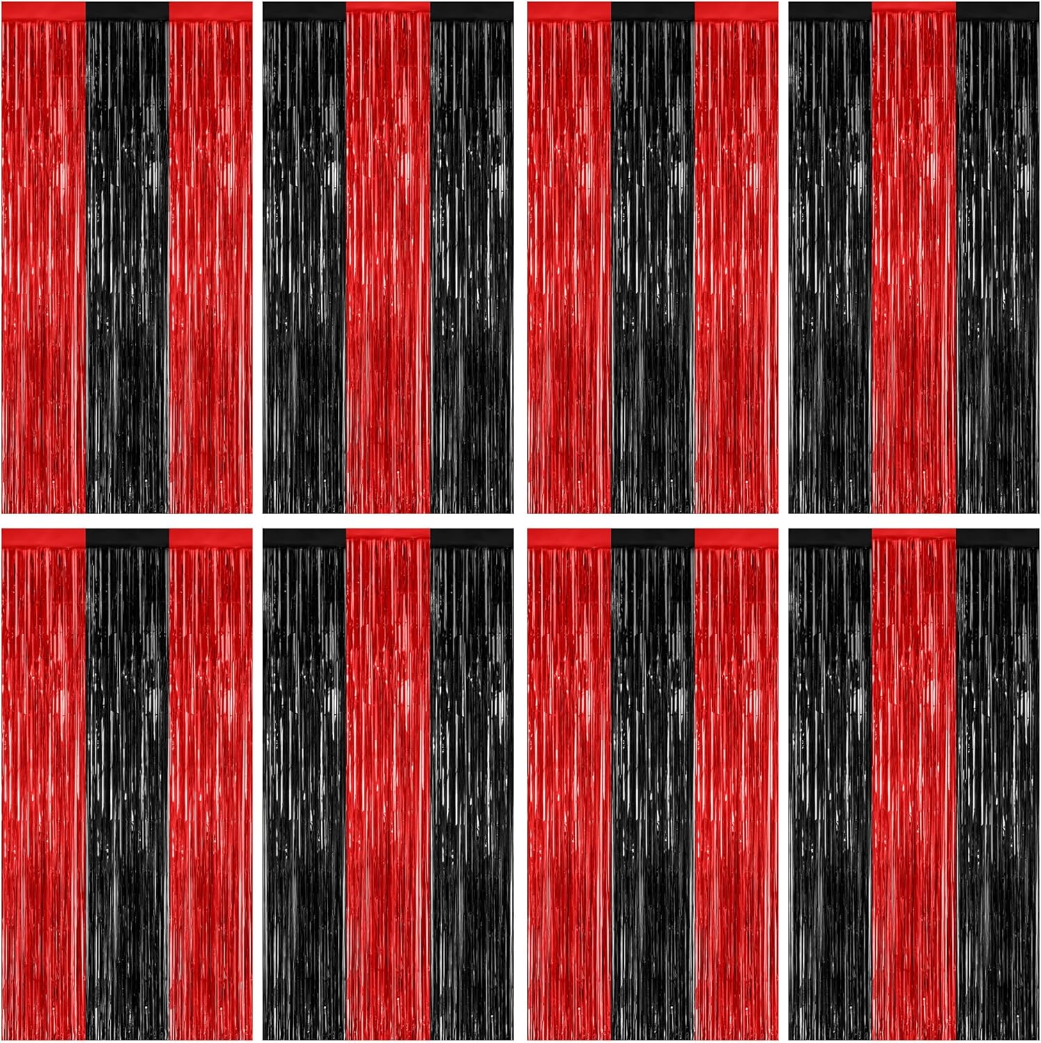 8 Pack Halloween Party Supplies, 3.28 FT x 7.05 FT Red and Black Foil Streamer, Metallic Fringe Curtains Tinsel Backdrop Party Streamer, Hanging Halloween Decorations Casino Party Decor