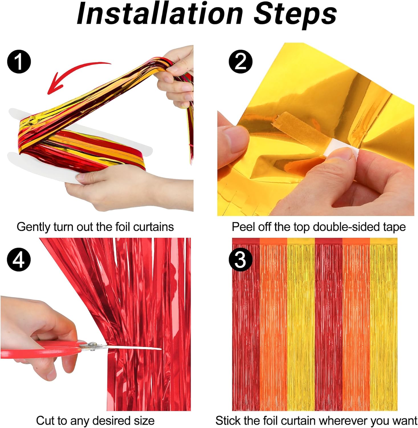 - Package Includes: You will receive 2 pcs red orange gold foil streamers, each measuring 3.28 ft x 7.05 ft, oversized to be cut to your desired length.