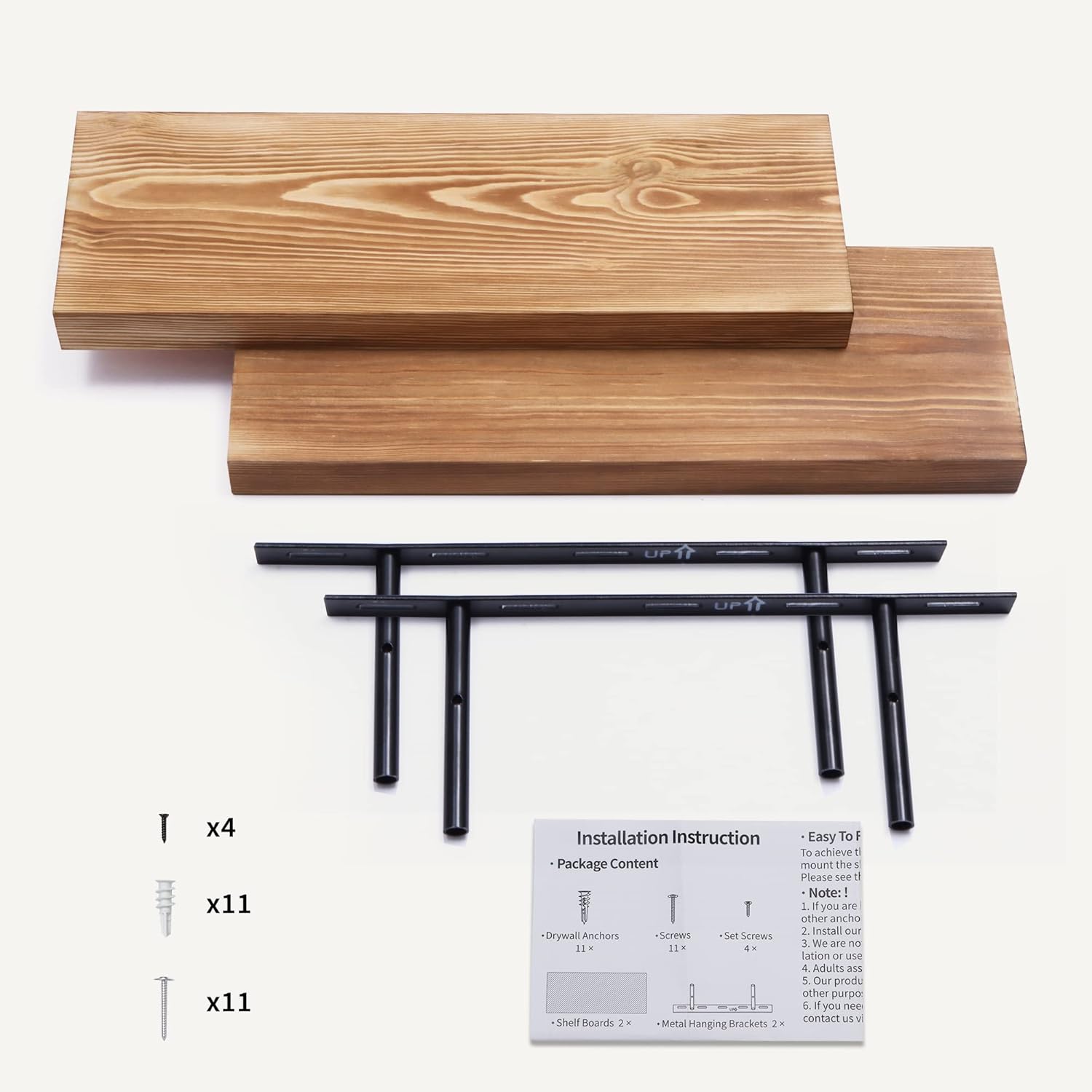 - Easy To Assemble - This floating shelves come with stainless-steel galvanized invisible brackets, toggle bolts for drywall & a simple instruction manual to help you install. The assembly of this wall shelf is very simple, only two boards and some necessary screws and other hardware, and we also have detailed instructions for you to view, you can assemble quickly. Please contact our product support team when you have any questions.
