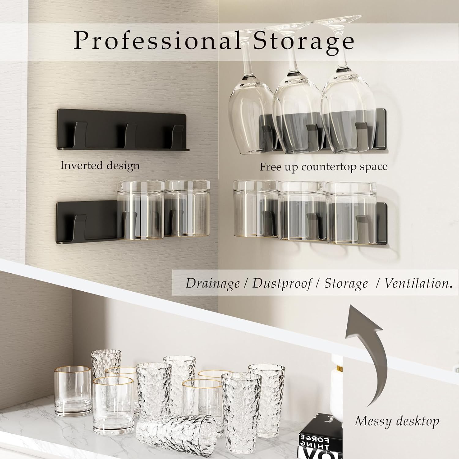 Cup Holder, 2 Pack Wine Glass Holder,No Drilling Installation Wine Glass Holder Wall Mounted for Dining Room, Kitchen and Bar Daily Use (Classic Black)