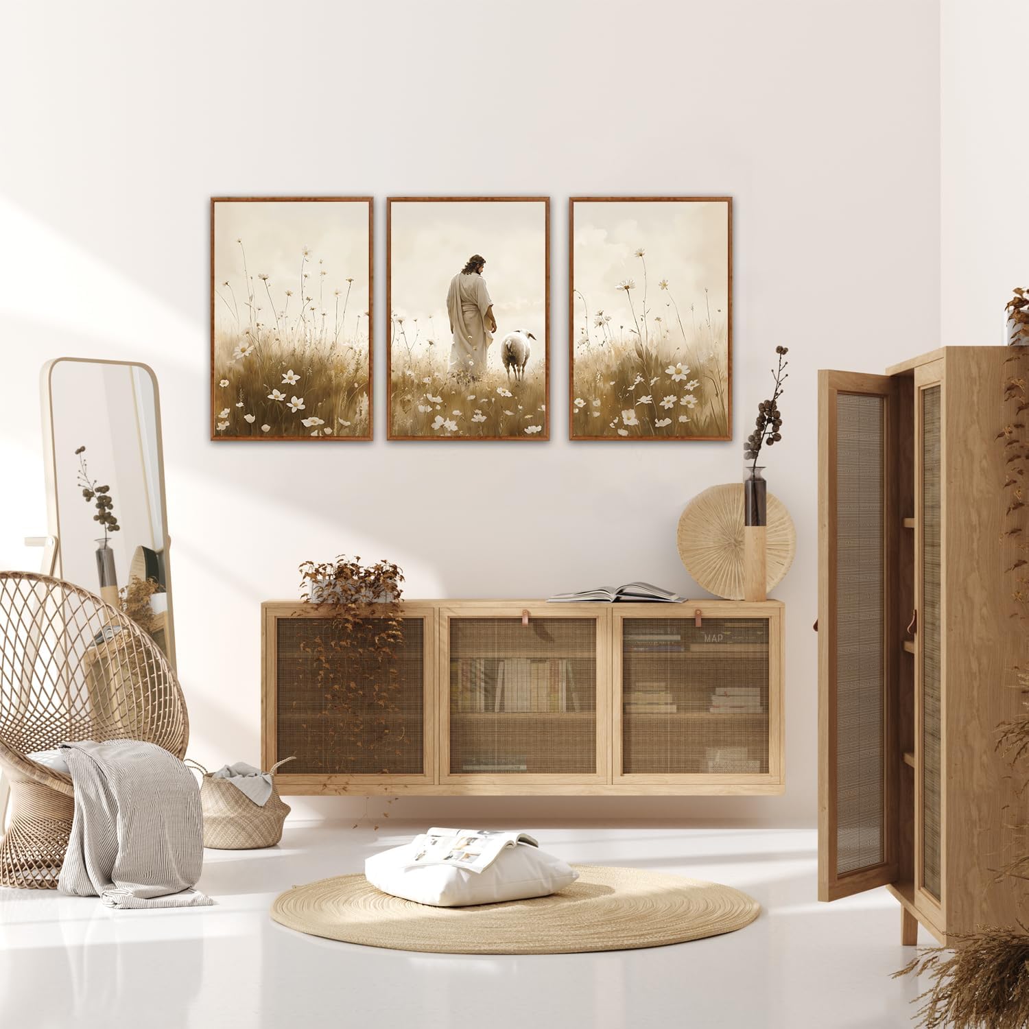 - 【Perfect Decoration]】This set of religious wall paintings featuring Jesus and sheep is a perfect Christian decoration.Whether it's your living room,bedroom,dining room,gallery,kitchen,office or any other place,it can blend with any style and bring more warmth to your space