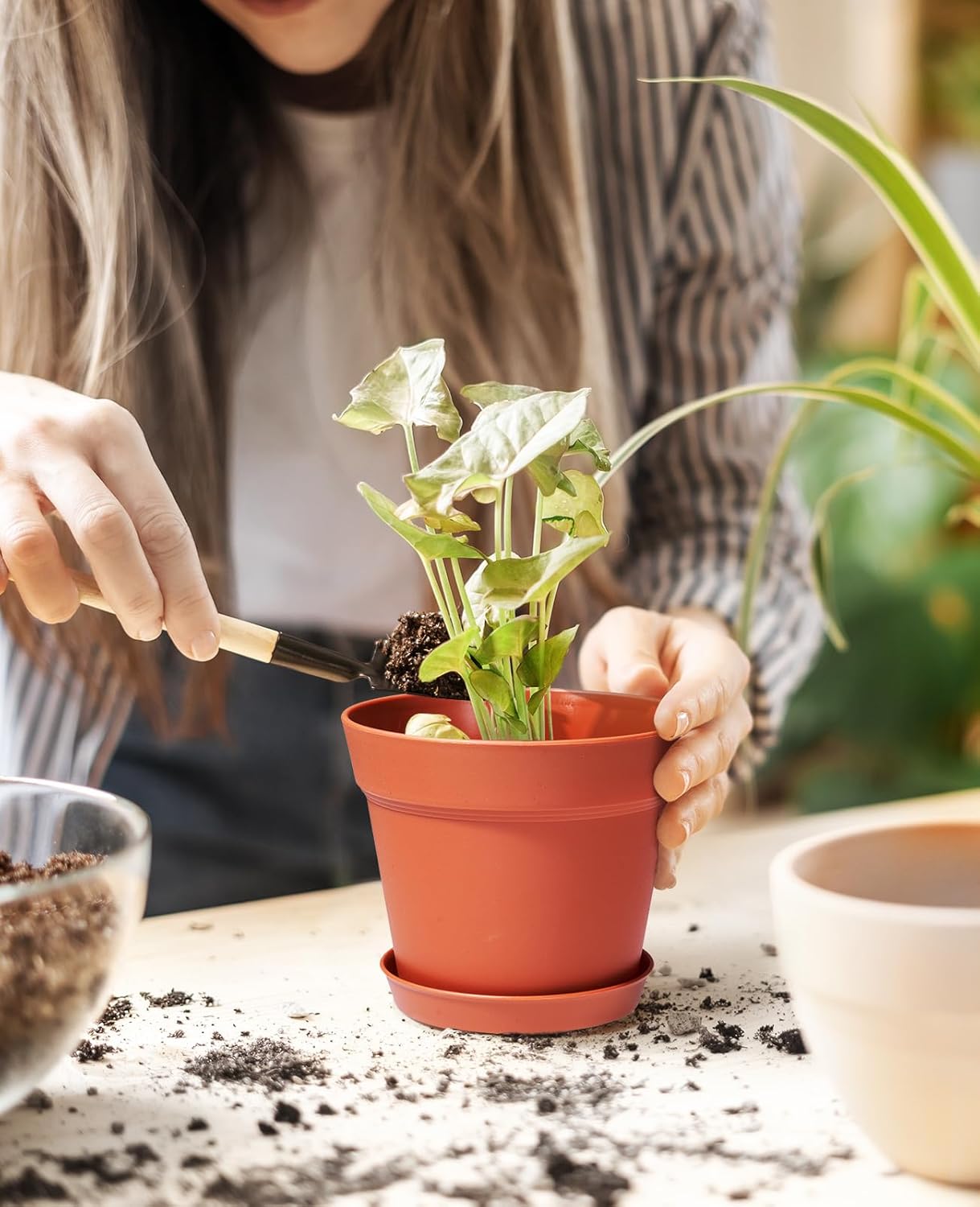- 【High Cost Performance and Practicality】This indoor plant pot set includes 8 pots and 8 matching trays,These pots can be used for indoor or outdoor planting of various plants, such as pothos, coriander, ornamental flowers, herbs, succulents, cacti, tomatoes, and chili peppers.
