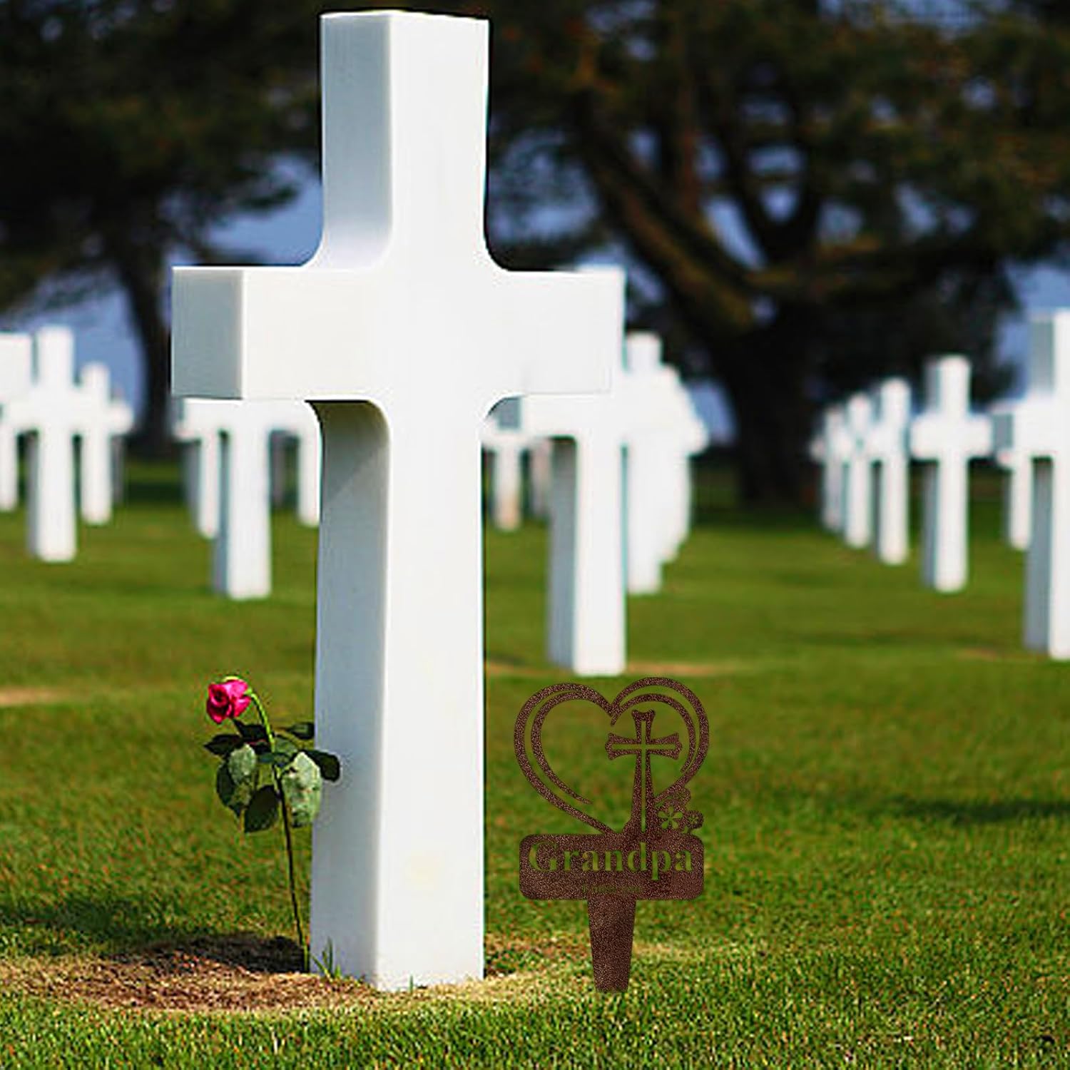 - Grandpa Graveside Decorations for Cemetery Size: Memorial Grave Stake for cemetery size is 12.5*7.2*0.04 inches, the pointy design on the bottom allows you to easily insert it into the ground and stand firmly. Please make sure the size is right before buying