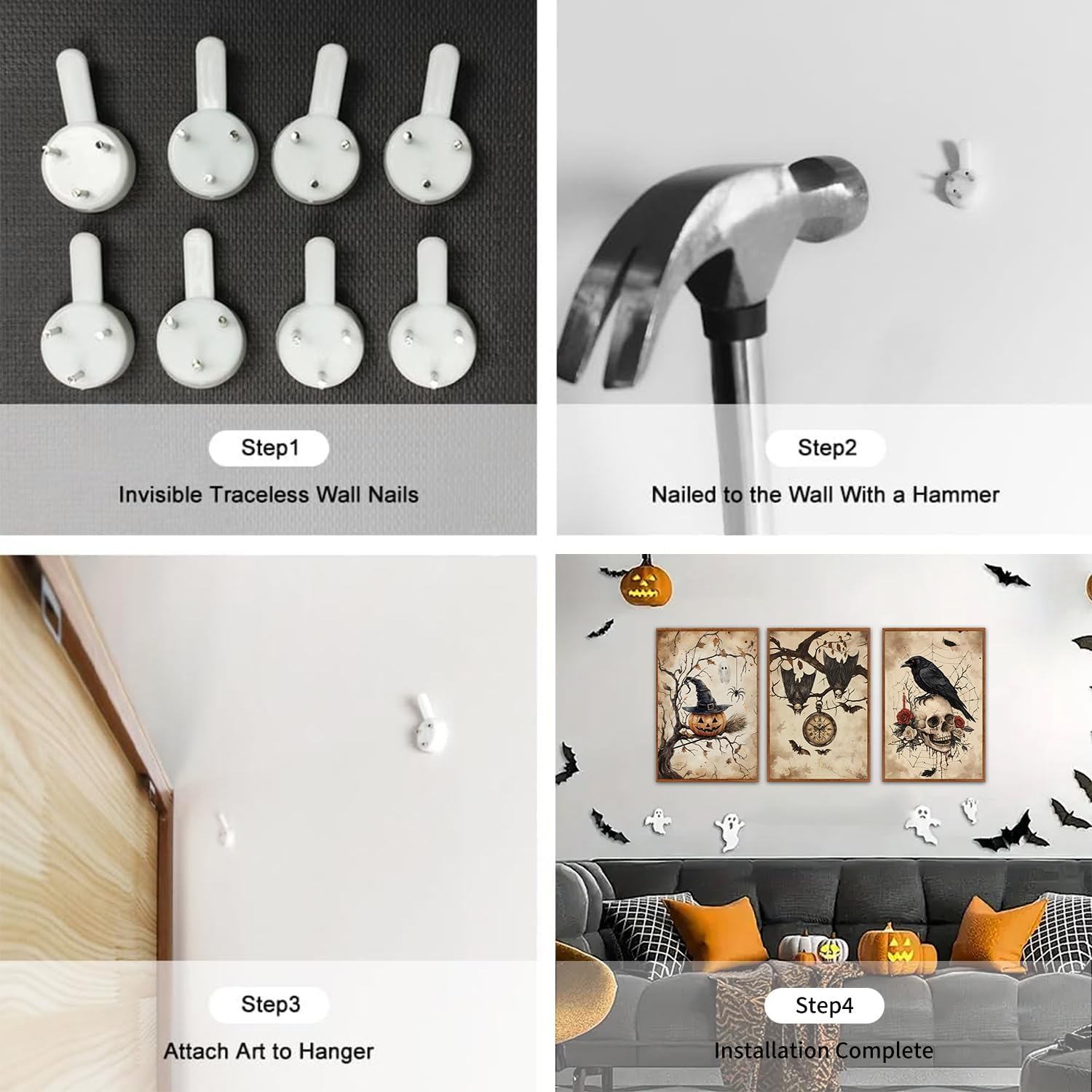 - 【Simple To Install】Each of these three horror ghost skull art prints pieces measures 16x24inches. It comes with all the necessary accessories so it's simple and easy to install. Simply choose where you want to decorate, make sure it's level and aligned the way you want it, and then nail it down with non-marking nails.