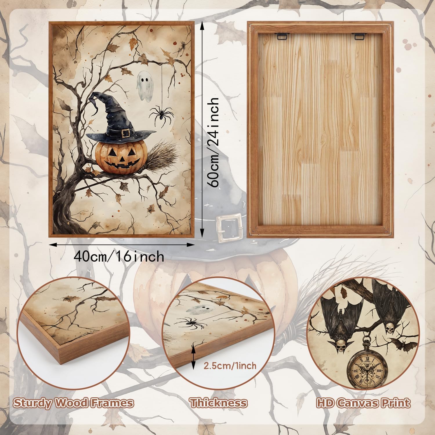 - 【Premium Quality Art Print】This large vintage Halloween picture wall art is carefully crafted with high quality canvas and advanced HD printing techniques to ensure that each print is clear and crisp. Resist fading and preserves as much detail and vibrant color as possible. The decorative painting is reinforced with a sturdy PS frame to provide solid support and protection against potential damage.