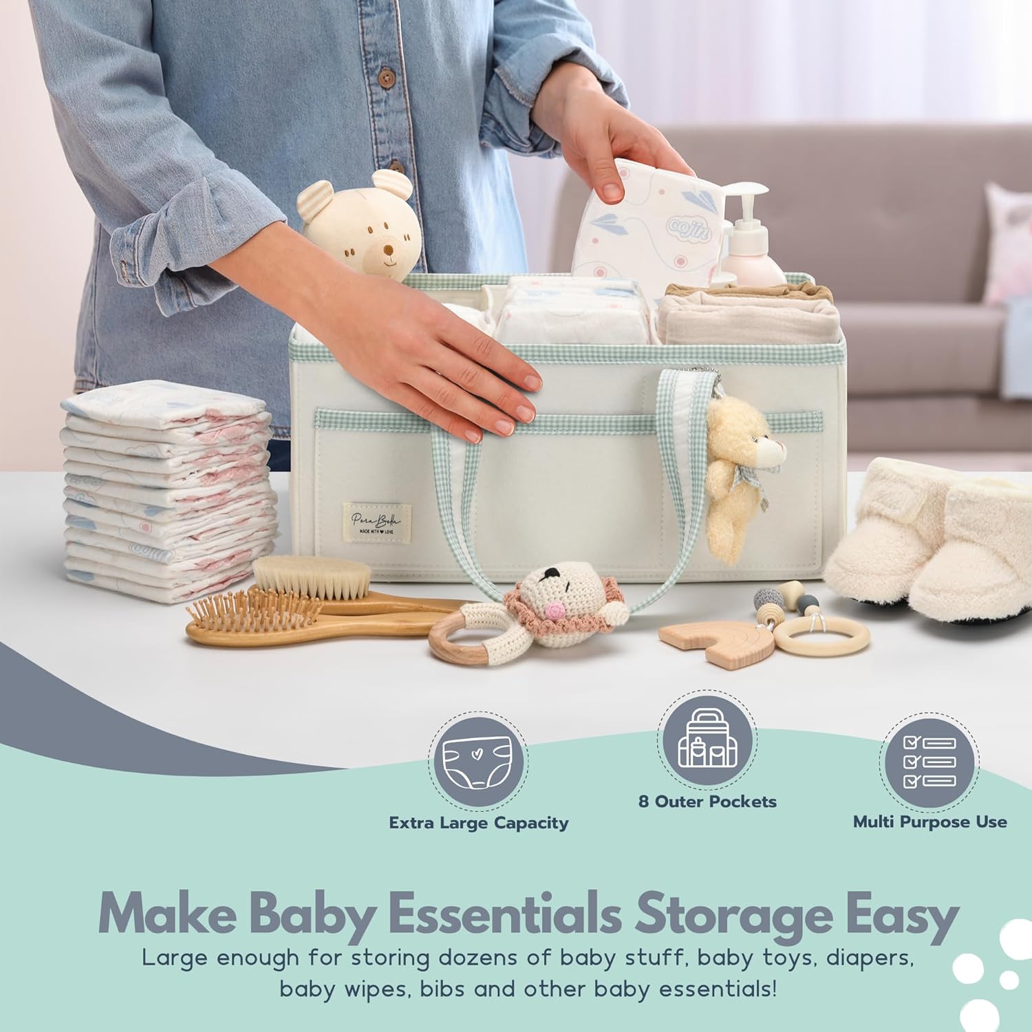 - MULTIPURPOSE USE BABY SHOWER GIFT: Our PeraBella baby caddy makes a thoughtful baby girl and baby boy shower gift. Use as a baby basket, baby organizer for nursery, nursery organizers and storage, baby changing basket, diaper bin, baby storage organizer, diaper tote, diaper holder organizer, diaper stacker, diaper caddy cart, baby boy stuff and baby girl stuff