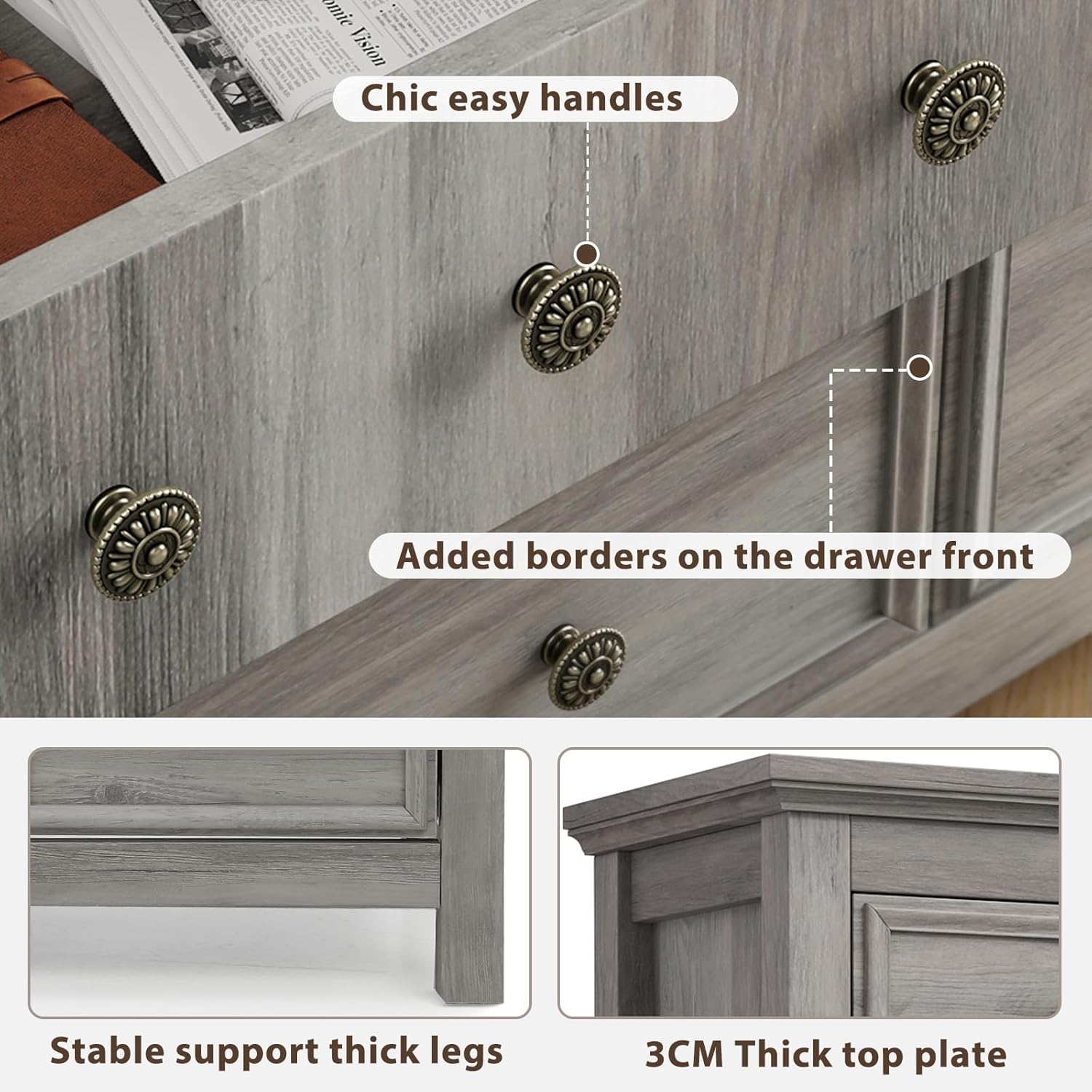 LGHM Large 9 Drawers Dresser, Long Dressers for Bedroom, Chests of Drawers TV Stands, Sturdy and Stable Storage Organizer - Thick Support Legs Design, 6" Deep Drawer for Living Room, Hallway, Gray