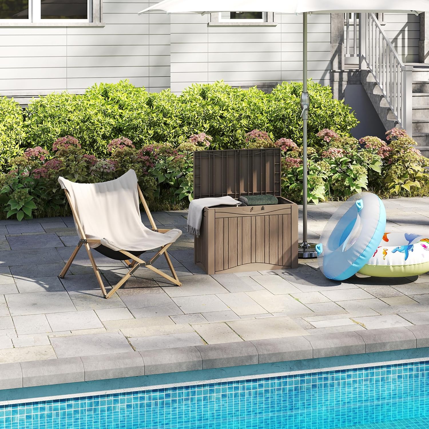 - Spacious Dimensions:The deck box measures30.7 inches L x 17.1 inches W x 22 inches H, offering a generous 50-gallon capacity for various outdoor storage needs.