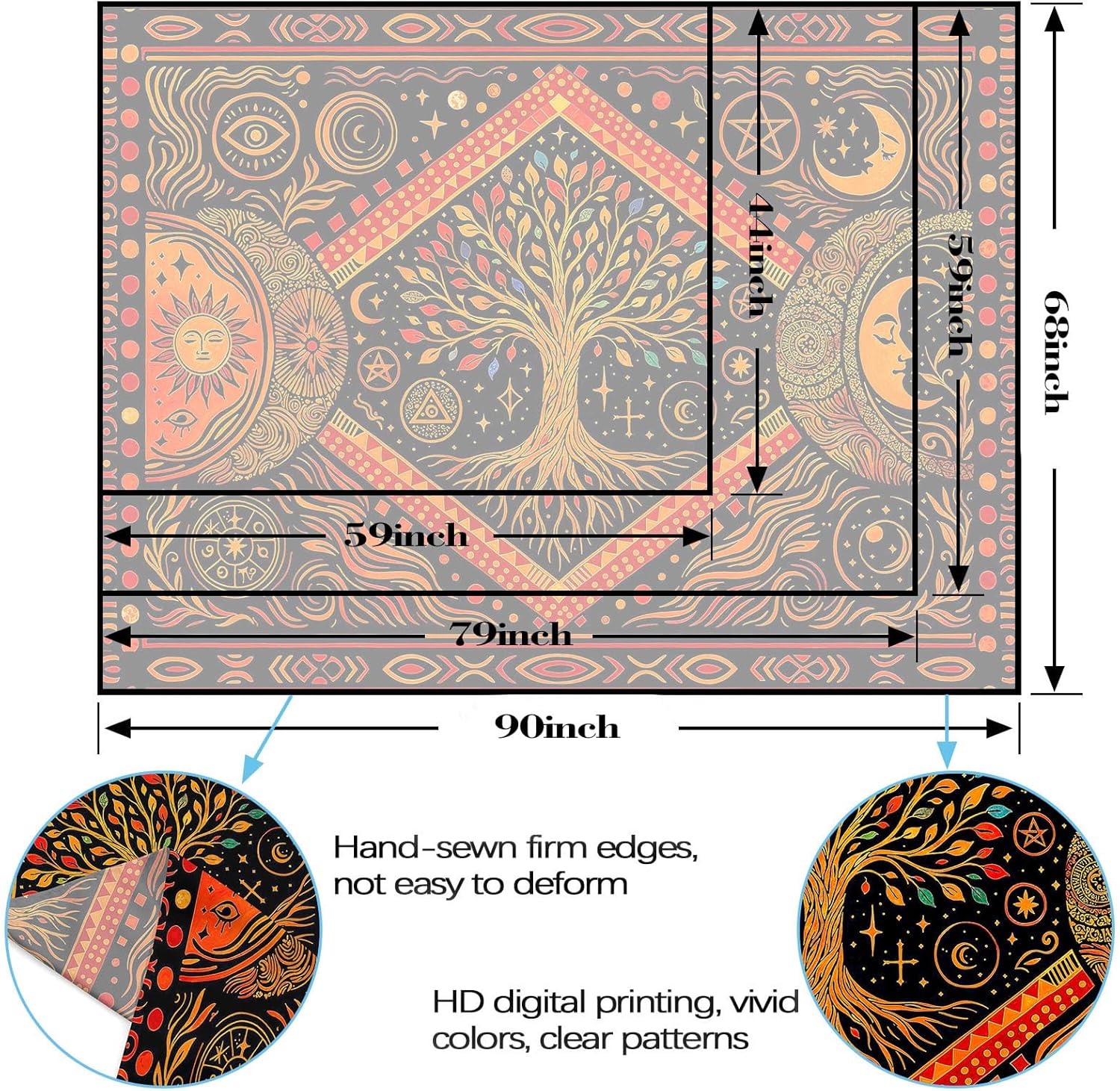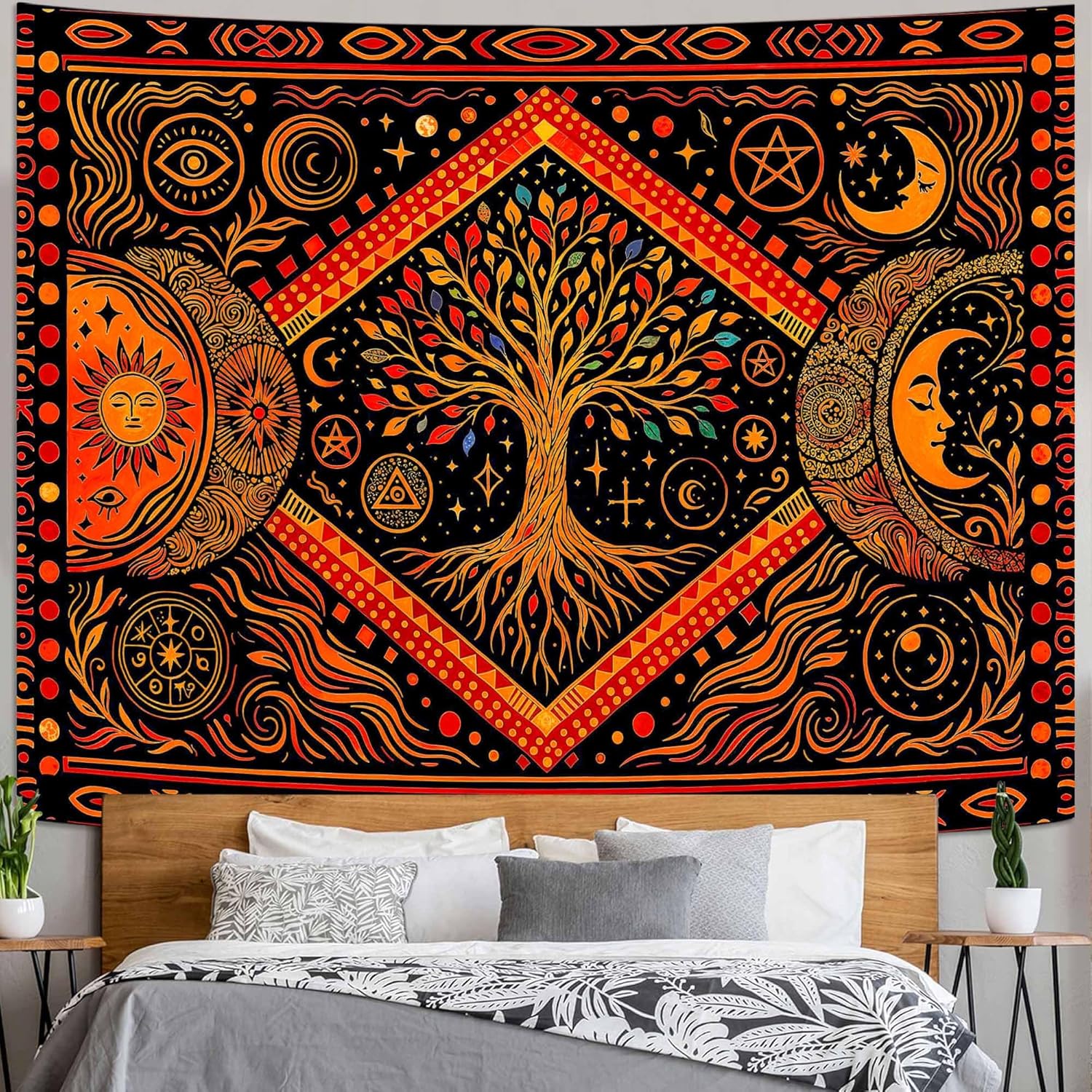Lunerfex Tree of Life Sun Moon Stars Wall Tapestry, Cosmic Harmony Symbol Tapestries for Home Decor, Mystical Tapestry 90x70 Inch