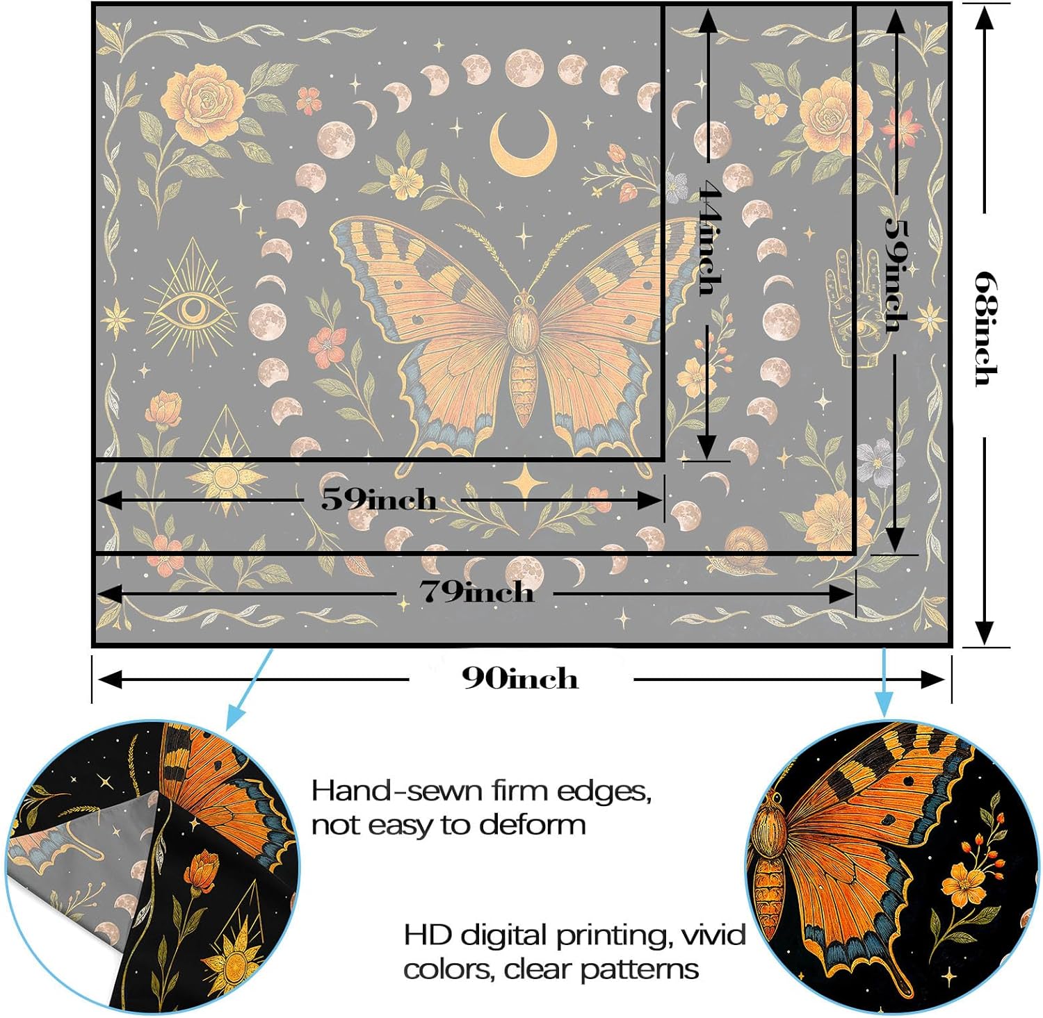 Lunerfex Moon Phase Butterfly Floral Wall Tapestry, Celestial Botanical Tapestries for Room Decor, Mystical Tapestry 90x70 Inch