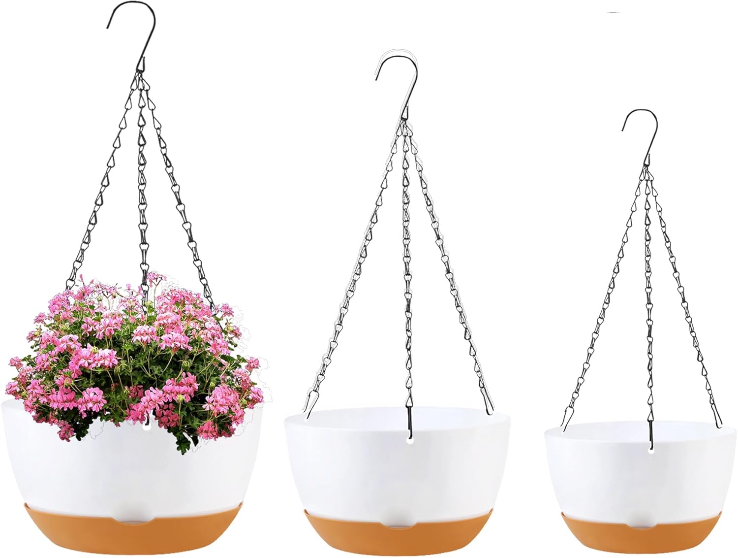 - 【Self-Watering Hanging Flower Pots with Removable Saucer】The innovative recessed design under each hanging indoor planter maintains optimal water levels for your plants and serves as a reservoir for consistent watering. This feature eliminates the hassle of watering plants while you're away on business trips or traveling, thanks to our hanging plant pot.