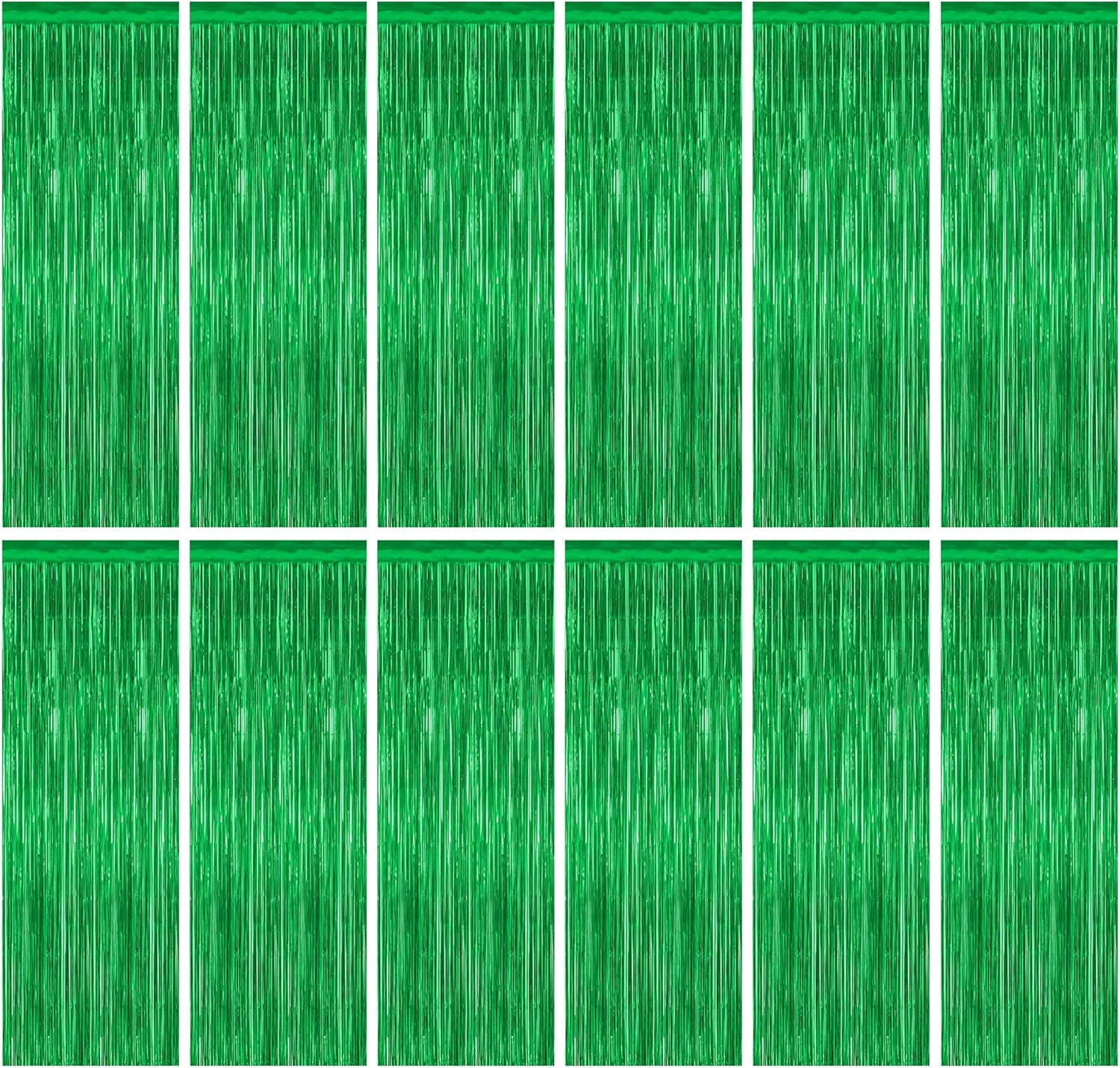 12 Pack Party Decorations, 3.28 FT x 7.05 FT Green Streamer, Metallic Birthday Backdrop Foil Fringe Curtains Green Tinsel, Party Supplies Photo Booth Props Door Wall Indoor Decor