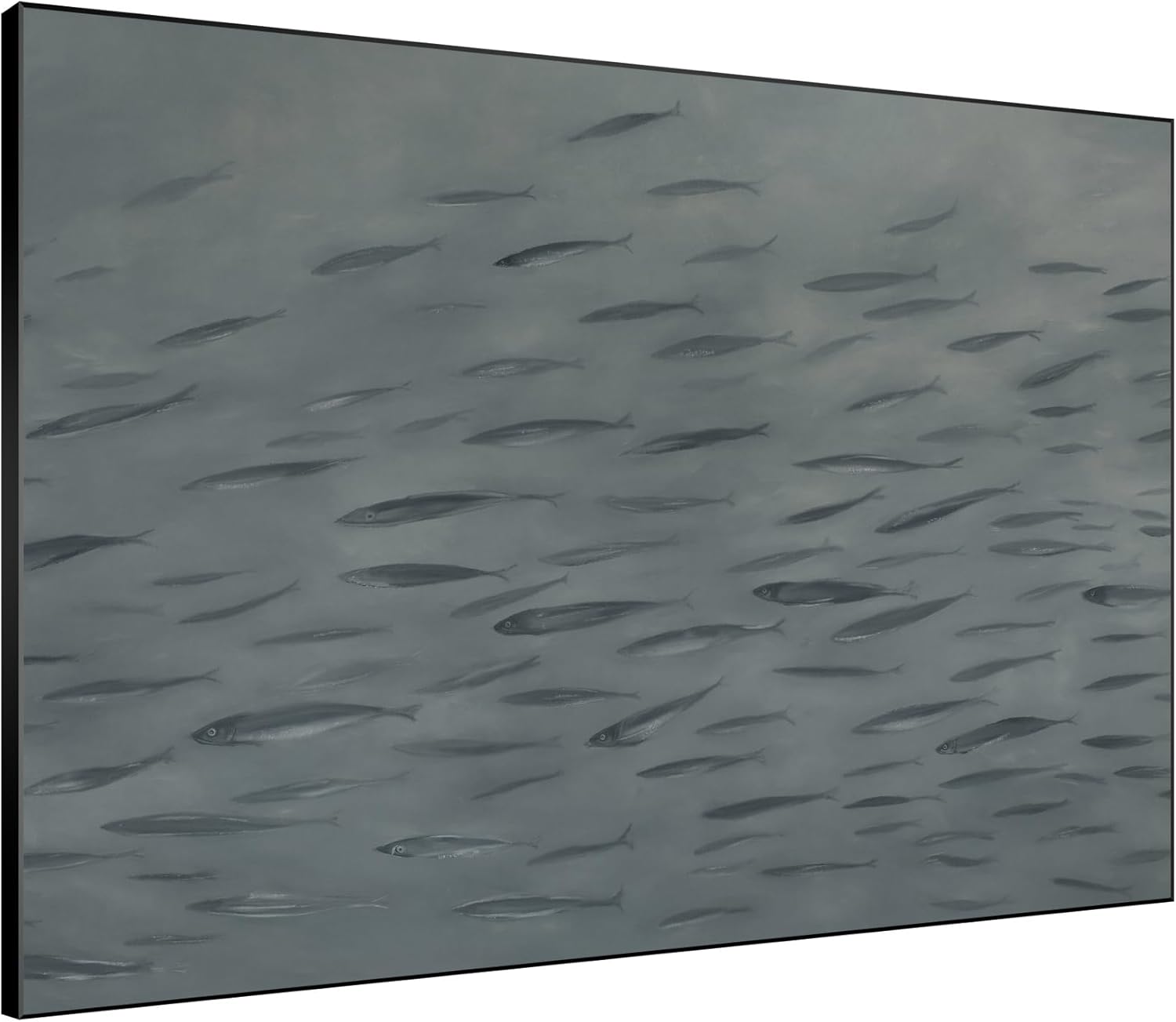 SIGNWIN 36"x46" Extra Large Framed Wall Art Gray School of Fish Minimalist Ocean-Inspired Marine Life Illustration for Home Living Room Bedroom Decor (Frame Assembly Required)