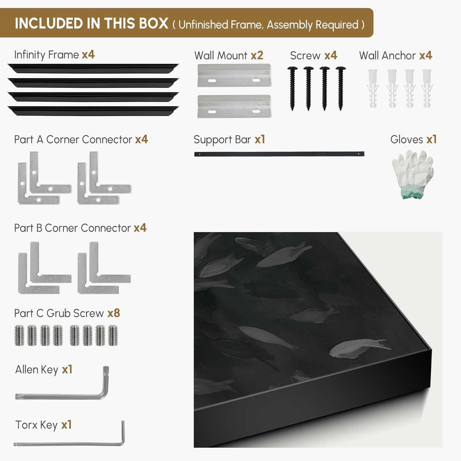 - Assembly Required: The artwork comes with the frame components unassembled. Don¡¯t worry - setup is straightforward and tool-friendly. For best results and accurate alignment, we recommend two people to ensure a smooth assembly and a stable, secure wall mount.