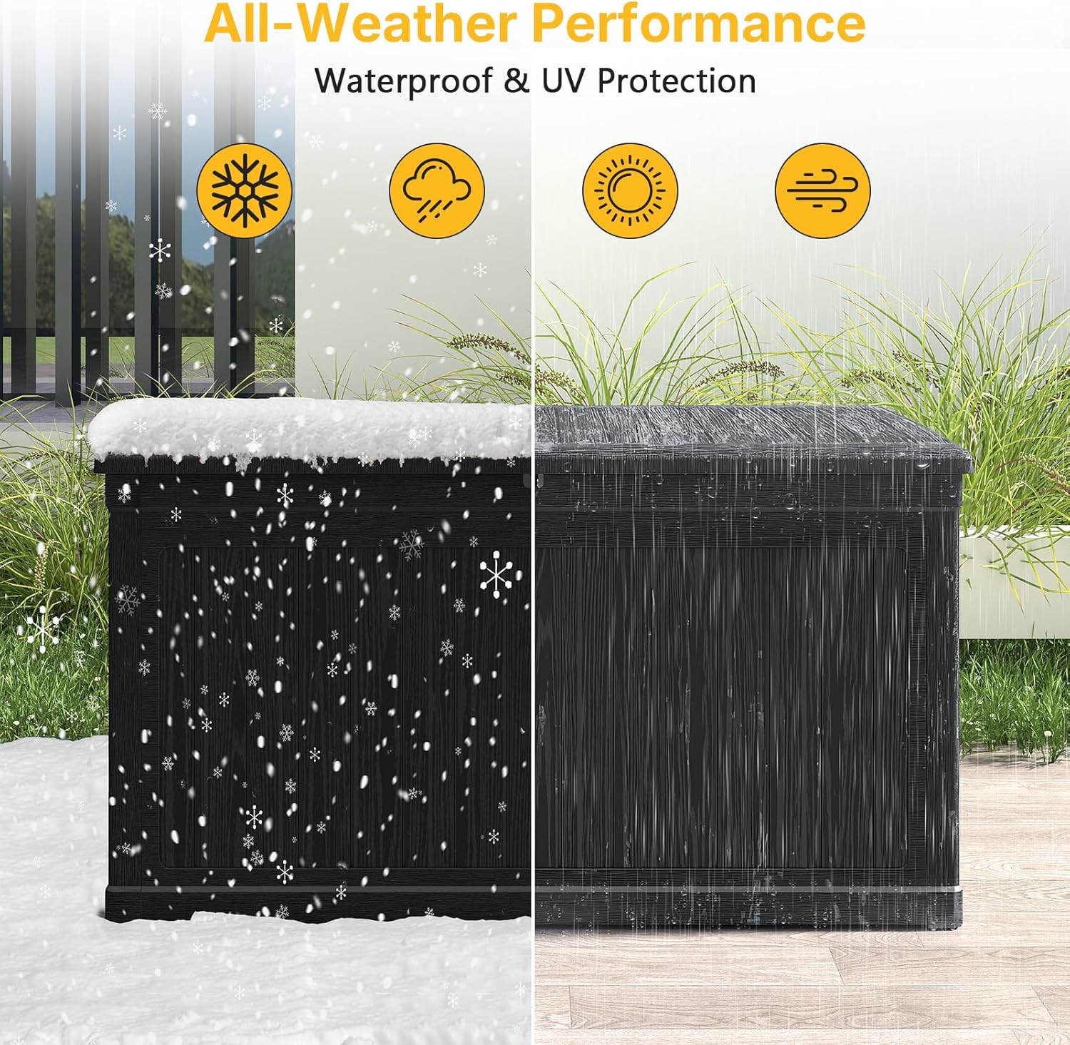 - 【All-Weather Durability】Constructed with premium weatherproof polyester fabric featuring UV-resistant coating, this outdoor storage box protects contents from rain, sun damage and dust.