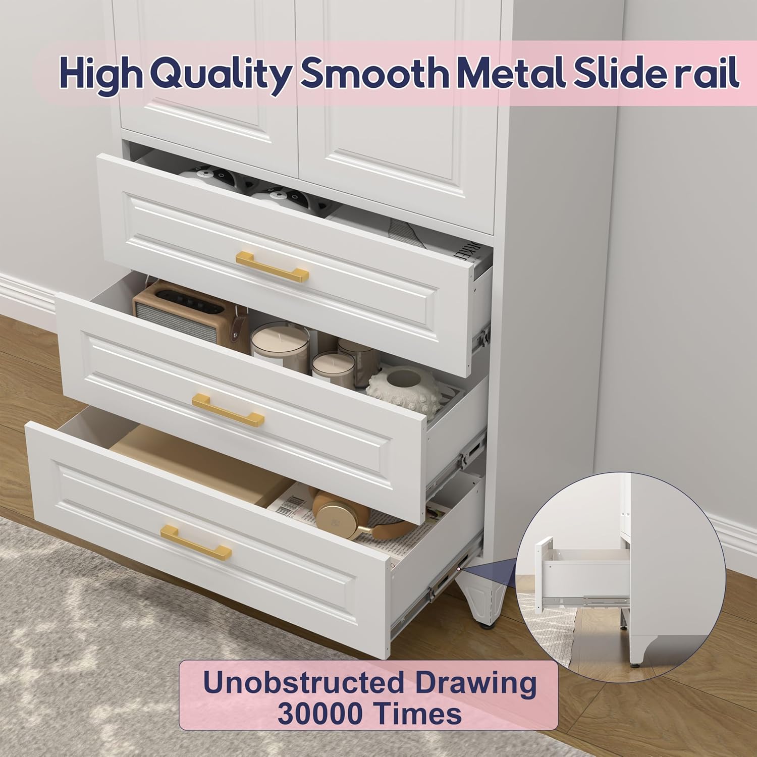- Spacious and Adjustable Storage: This tall pantry cabinet has 3 adjustable shelves and a deep drawer. The height of the shelf dividers can be adjusted to maximize organization in your kitchen or home. Each shelf can hold up to 180lbs, making it ideal for heavy kitchen utensils or bulky household items