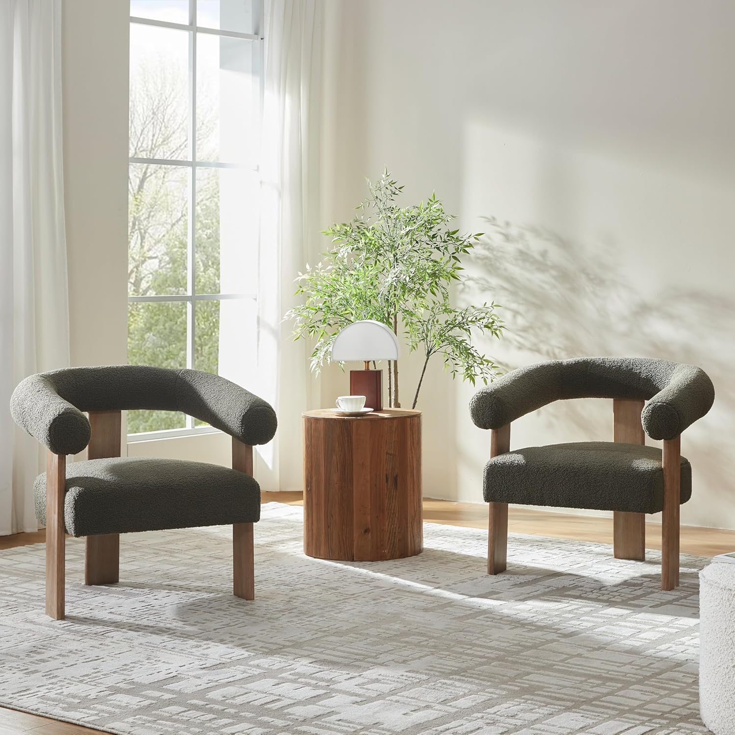 VKNOW Accent Chair Living Room Chair Set of 2, Modern Upholstered Armchair with Solid Wood Legs, Comfy Barrel Arm Chairs for Living Room Bedroom, Sage Green