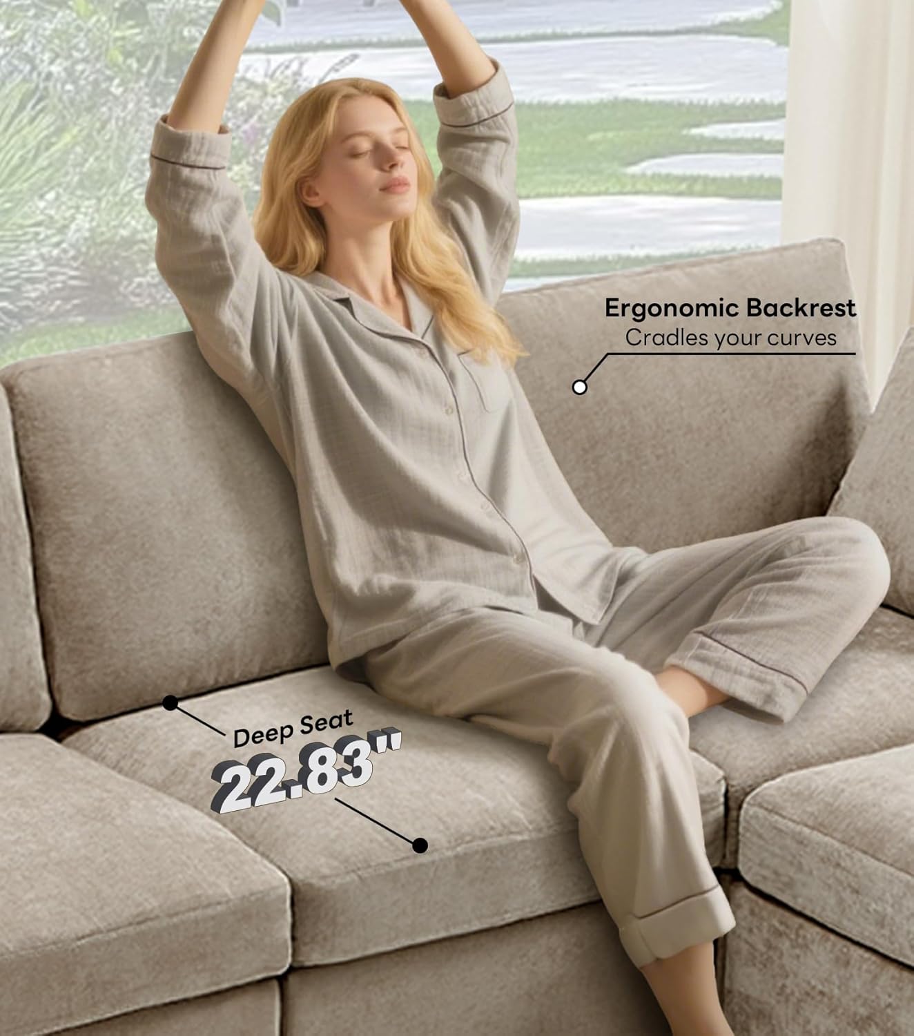 - Cloud-Like Comfort - Crafted with high-density foam and quality springs, this cloud couch delivers adaptive support, prevents sagging while maintaining shape. Enjoy balanced softness, pressure relief, and long-lasting durability—ideal for your living room. Relax in ultimate comfort!