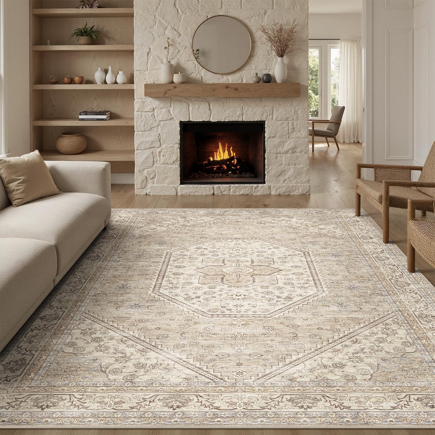 - 【Easy Clean Rug-care & Quick Revival】Machine washable area rug shipping creases? soft living room rug roll opposite direction to flatten, the creases on the non slip area rug 8x10 will disappear automatically after 24 hours. preserve plushness with soft-brush vacuuming and gentle cold-water machine wash (never bleach!). air-dries fast for same-day use—maintaining "like-new" brown beige area rug for living room for years.